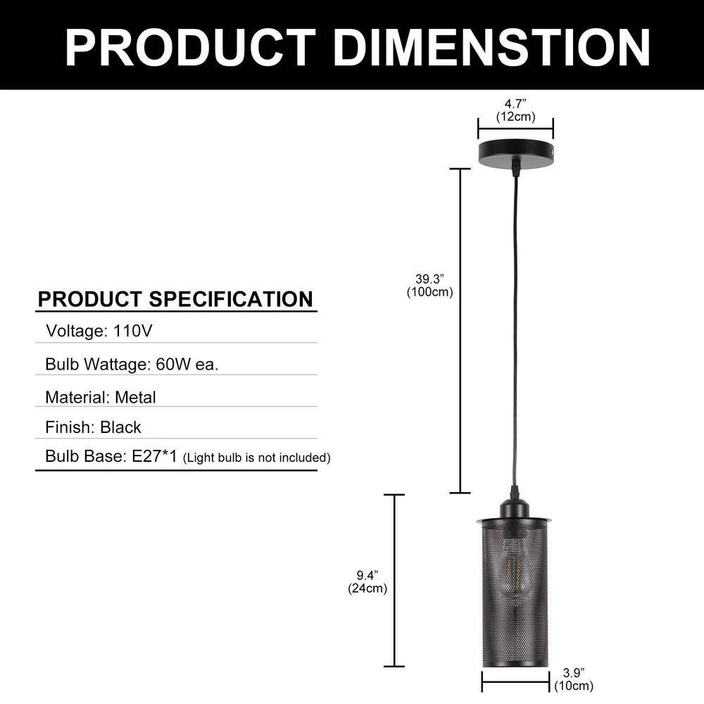 - Pendant light dimensions: 3.94 in. x 3.94 in. x 9.45 in.