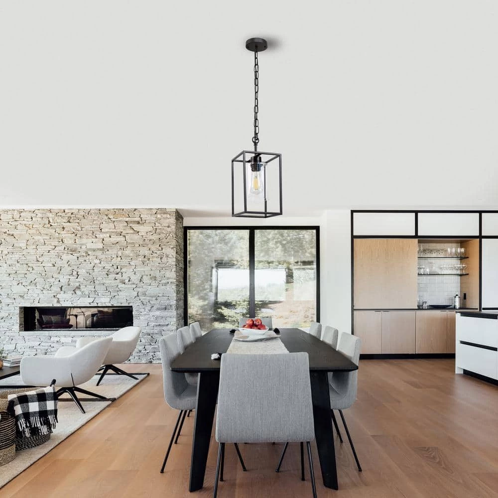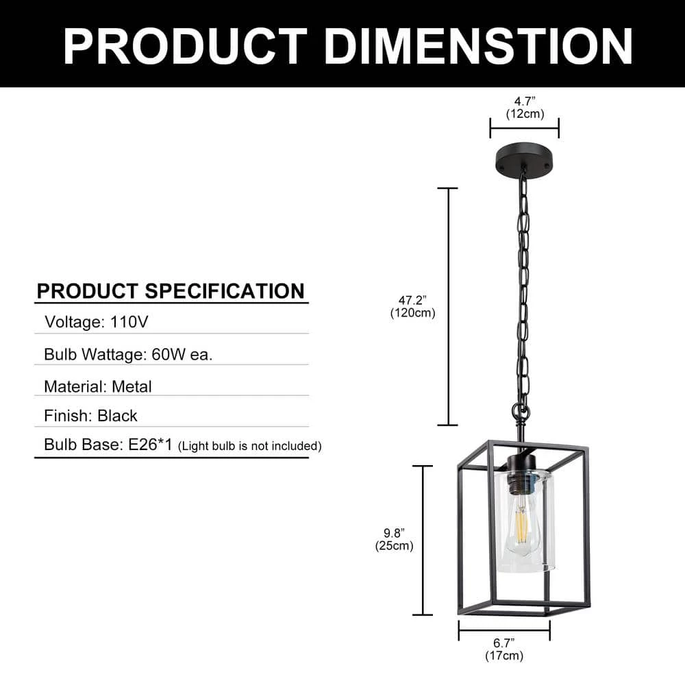 The pendant light fixtures is crafted of high-quality iron frame, matching with classic black finish. Brimming with farmhouse and vintage flair, this kitchen light fixtures is not only rectangle chandelier lighting but also decoration for your house. The bulb is not included. It is recommended to buy a 60-Watt, E26 bulb.