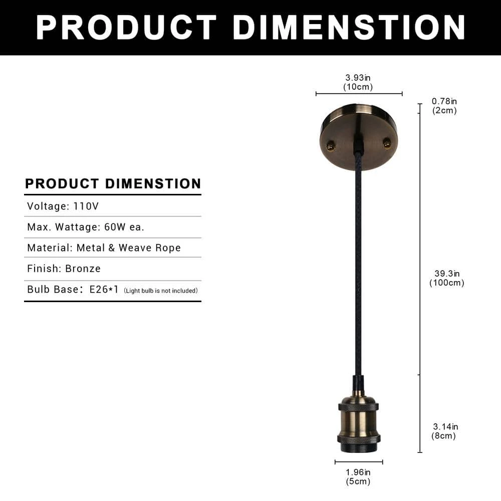 - Wide application: light pendant lamp holder for indoors, home, bars, cafes, hotel hall, exhibition hall, living room, bedroom, kitchen, Christmas, party and so on