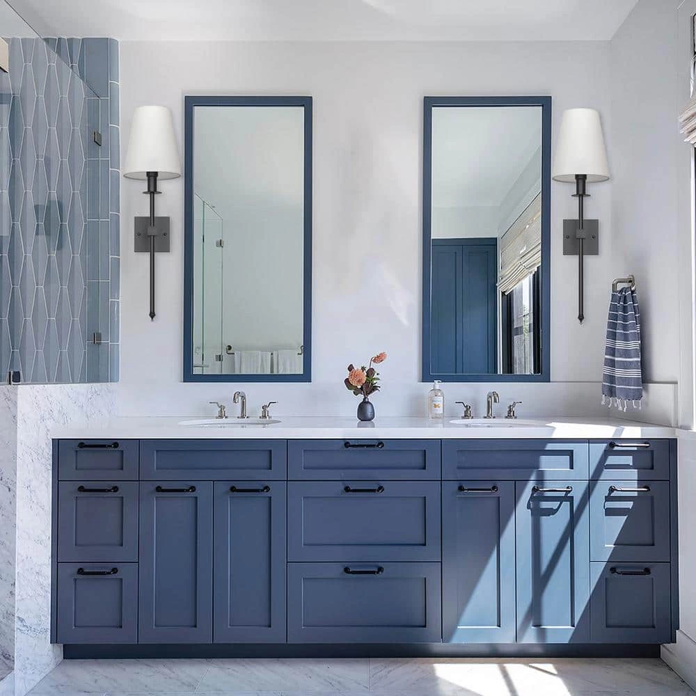 This 1-light wallchiere adds extra illumination and a glam accent to your French country-inspired home. They’re made from metal in a matte black finish and feature a square backplate with a long, torch-like arm that looks great in contemporary or classic spaces. A fabric empire shade caps this sconce and diffuses the light from a 60-Watt bulb (not included) throughout your living room, dining room or powder room. Plus, this fixture is compatible with a dimmer switch, so you’ll always have the right amount of light day or night.