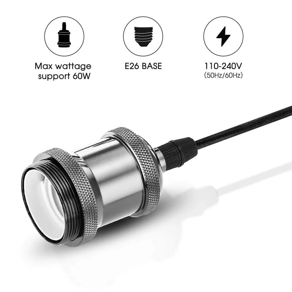 The standard E26/E27 socket can work with incandescent, CFL and LED light bulbs. For example, you use it with a standard Edison bulb and LED globe bulb as well as a spotlight bulb or even a grow light bulb. It can be used alone and in combination, or use it with other decorative lighting fixtures such as light cages, spheres or paper lanterns.