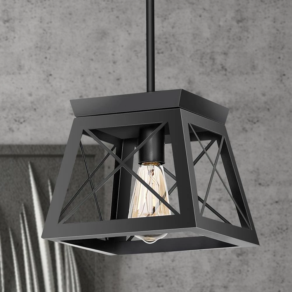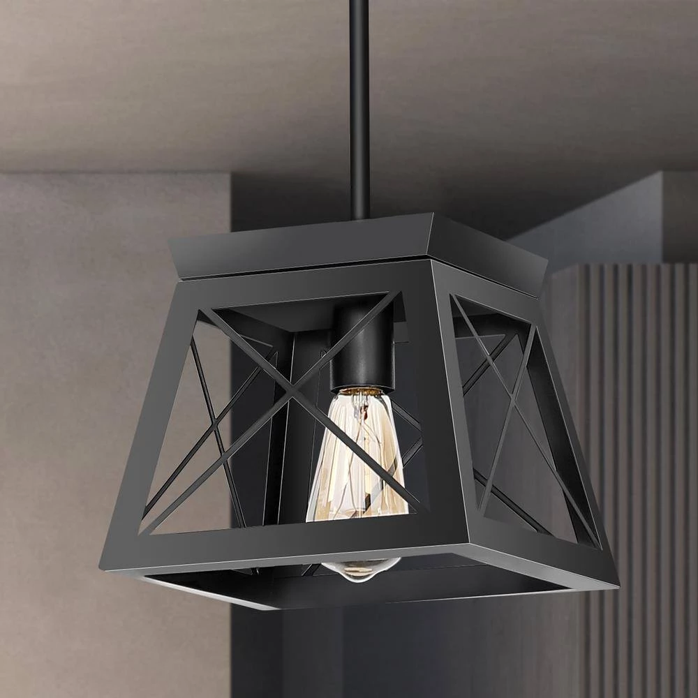 YANSUN minimalist yet stylish pendant light provides aesthetics and function over your kitchen island or entryway. A geometric metal cage with neutral black finish brings a modern element to your industrial or vintage home decor, perfect for kitchen island, dining room, hallway, restaurant, foyer, entryway and so on. Inside the shade hangs 1 medium-base bulb up to 60-Watt (not included) that creates a wonderful vibe wherever you hang it. Plug, 4 separate hanging rods allow you to tailor the desired height for your home space, and the rounded canopy is compatible with sloped ceiling to meet different ceiling surfaces and make your installation a breeze.