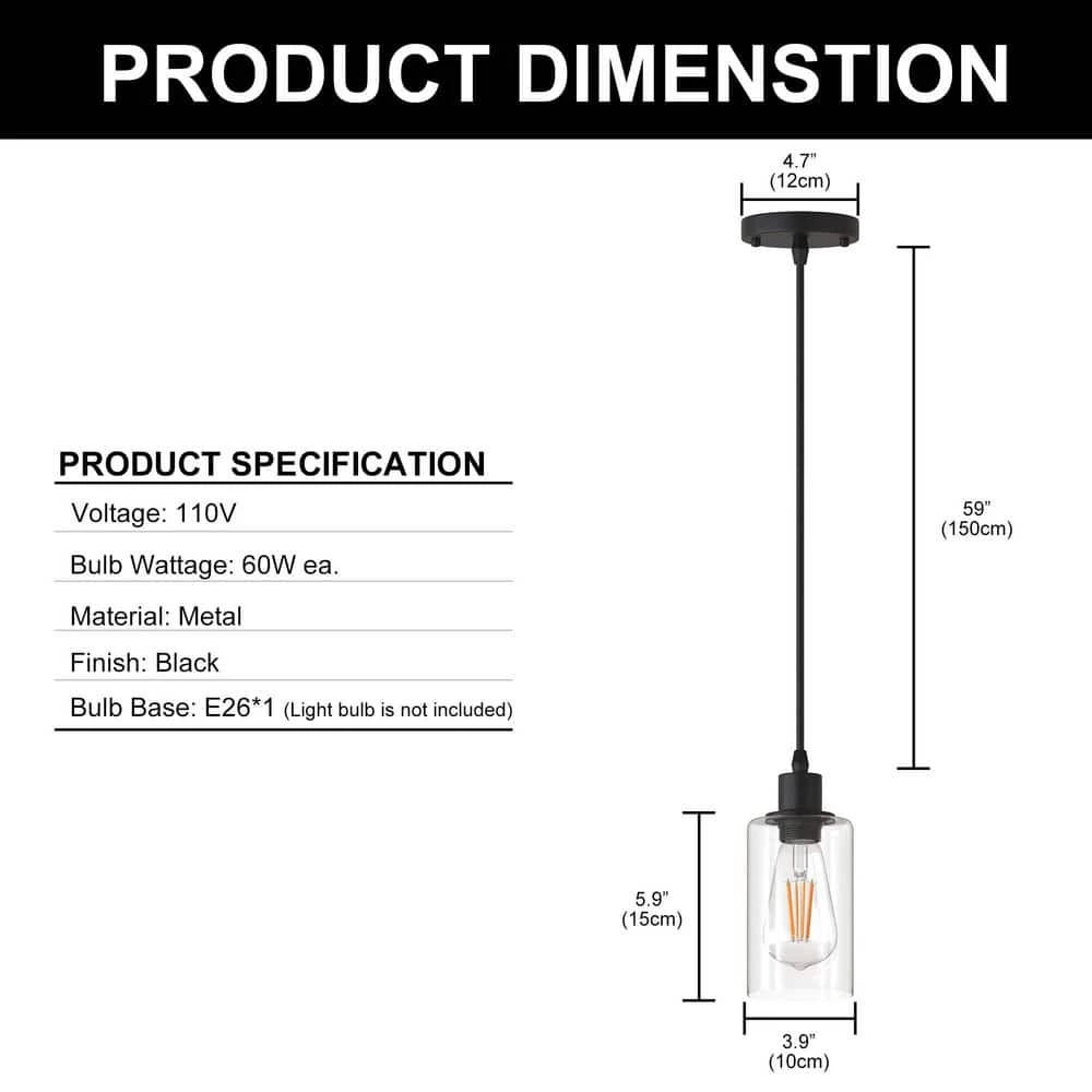This industrial light fixtures ceiling hanging is proud to introduce a matte black finish accented with clear glass mini pendant. It is a perfect choice over your kitchen island or dining area.A cylindrical glass shade completes the design, allowing a clear view of the 60W medium base bulb (not included) enclosed in it.