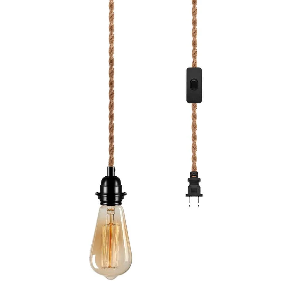 1-Light Vintage Plug-In Hanging Pendant with Hemp Rope and Black Socket (Pack of 1) by YANSUN