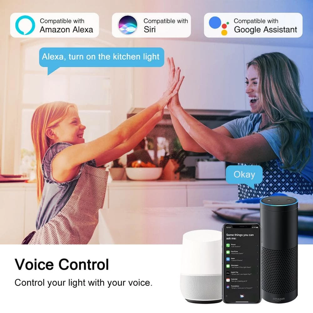 - Voice ControlCompatible with Alexa, Google Assistant, Siri, this E26 smart bulb can be controlled with the sound of your voice, making your life a whole lot easier.