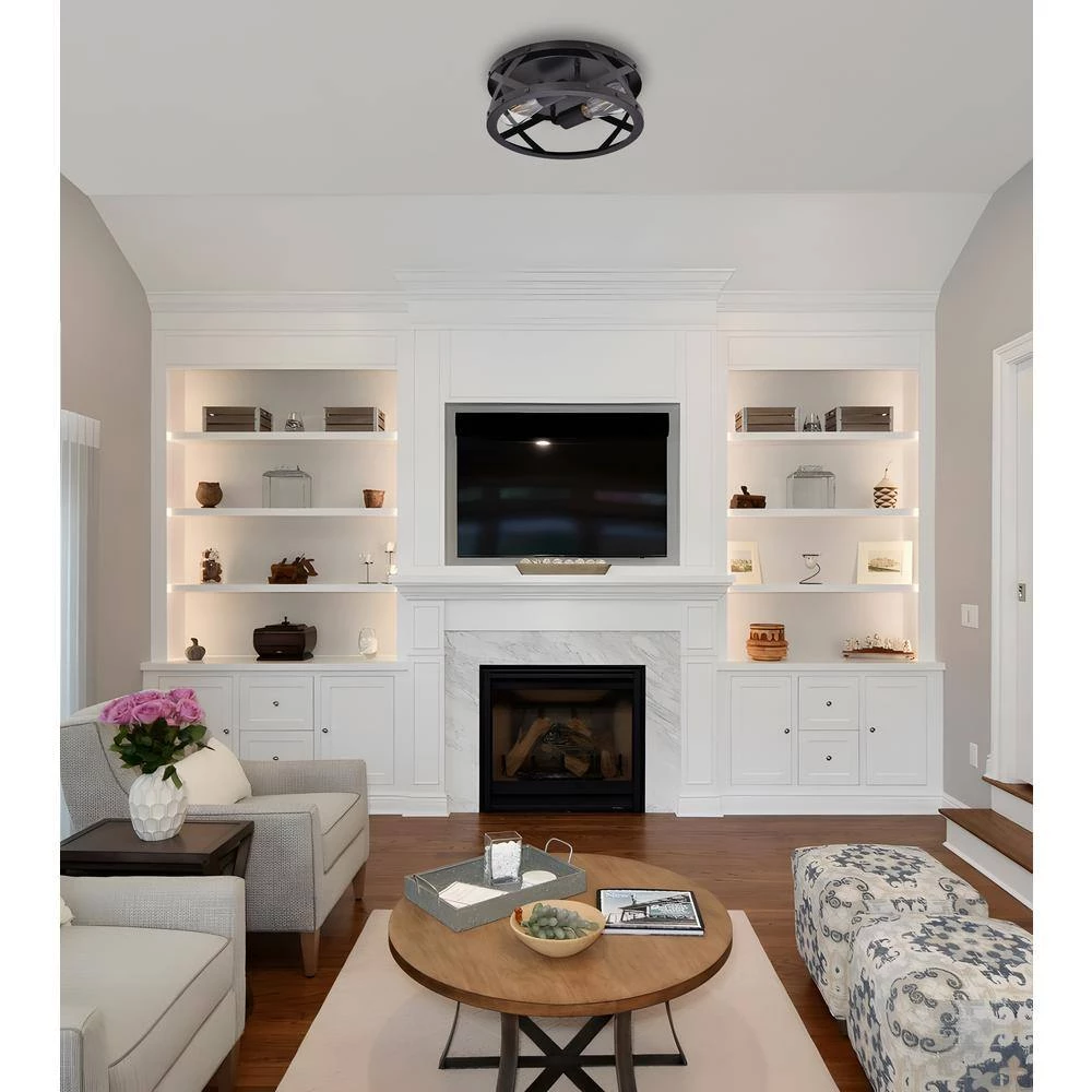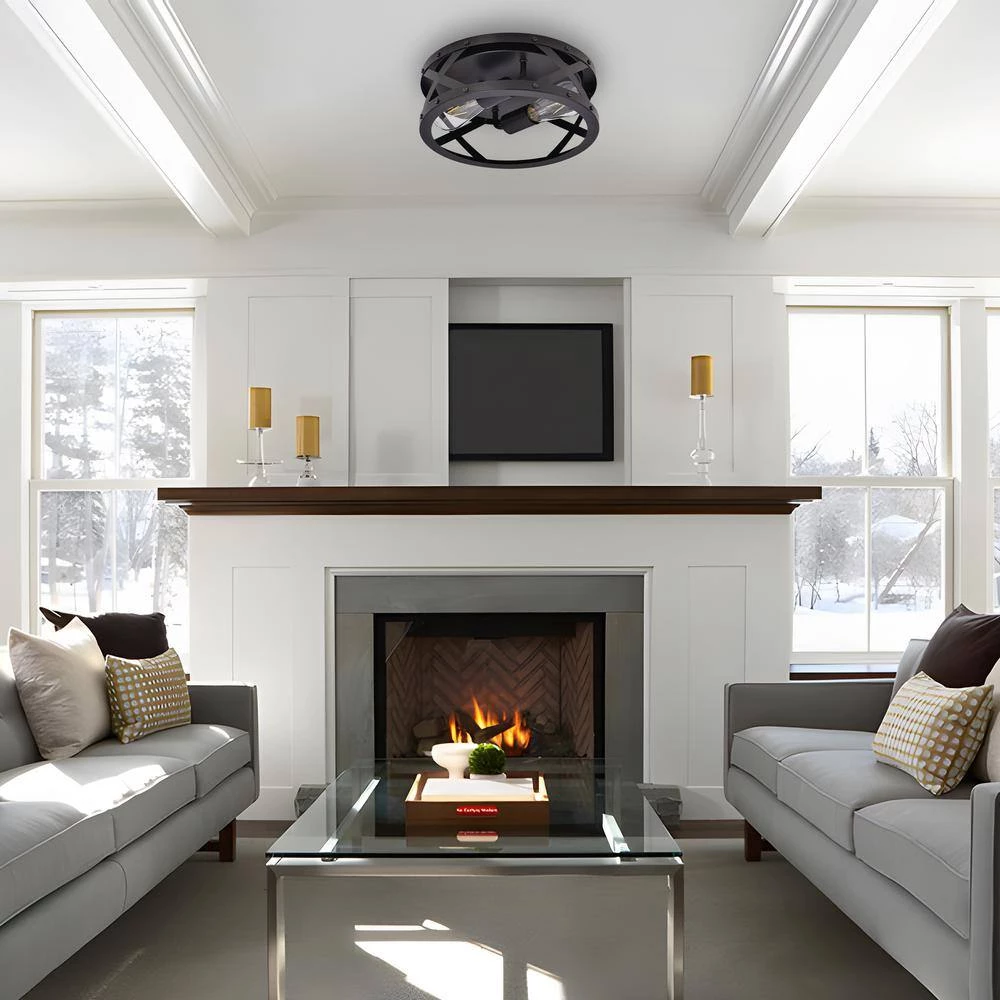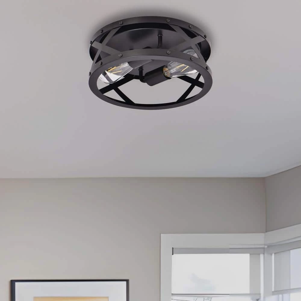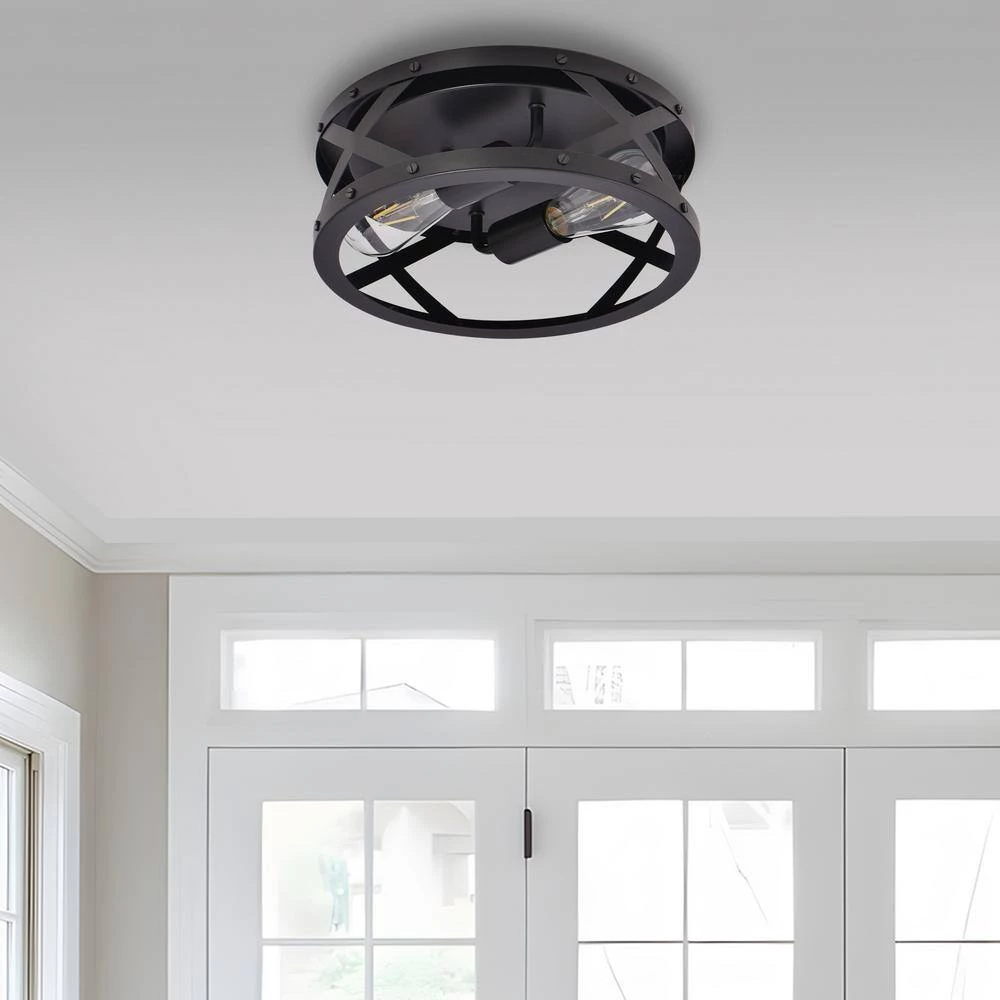 - Elegant appearance: this 2-light round industrial flush mount ceiling light fixture has simplistic but artistic look, combining traditional retro style with simple modern shape