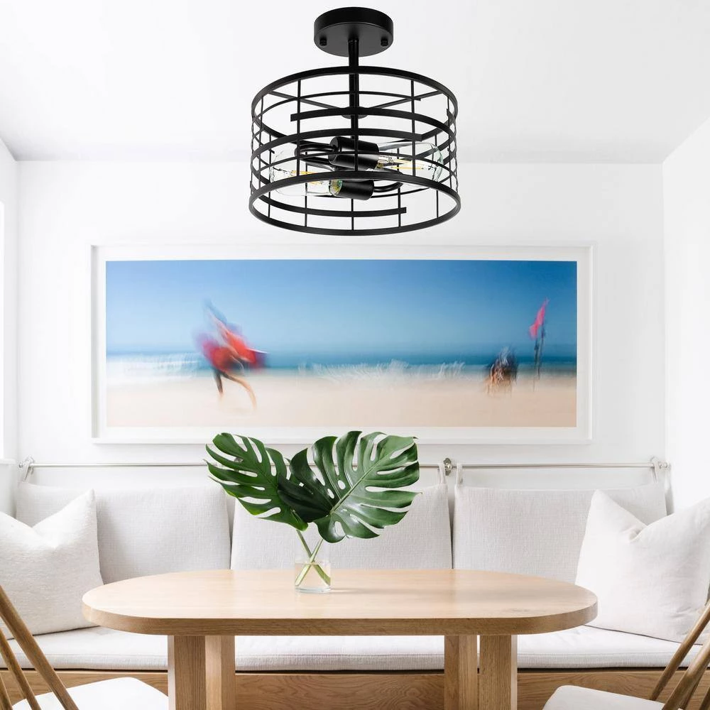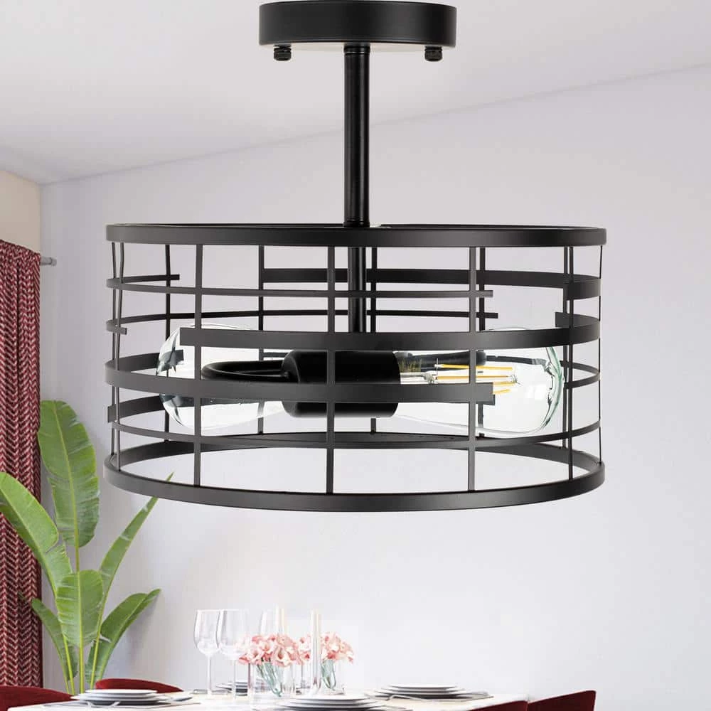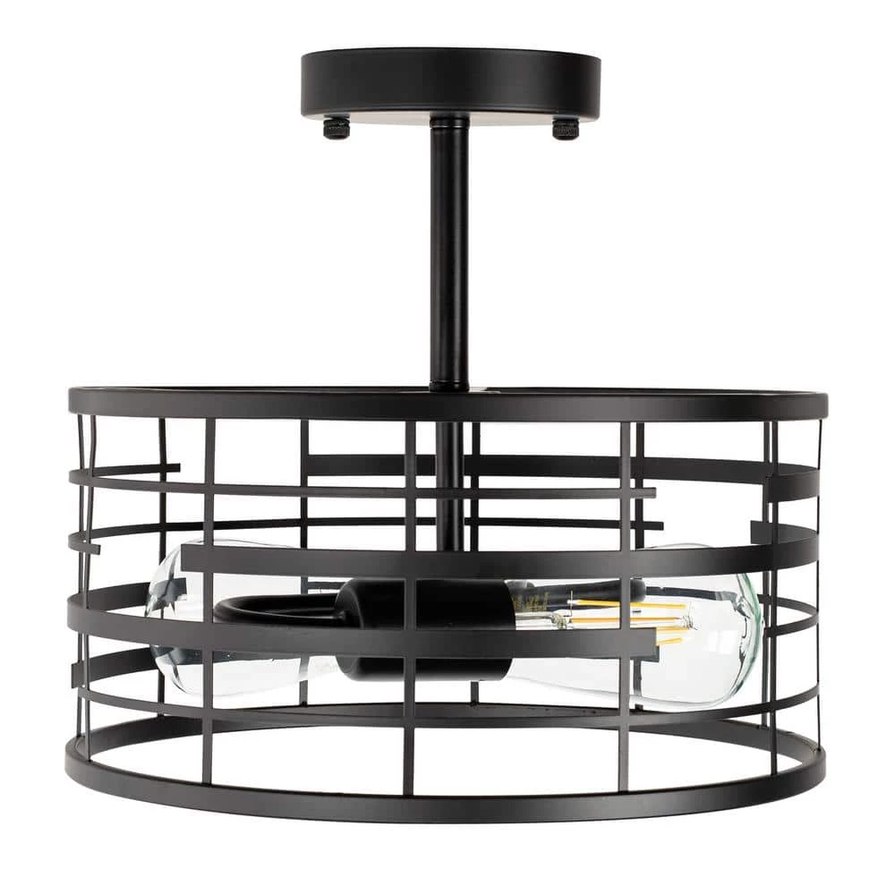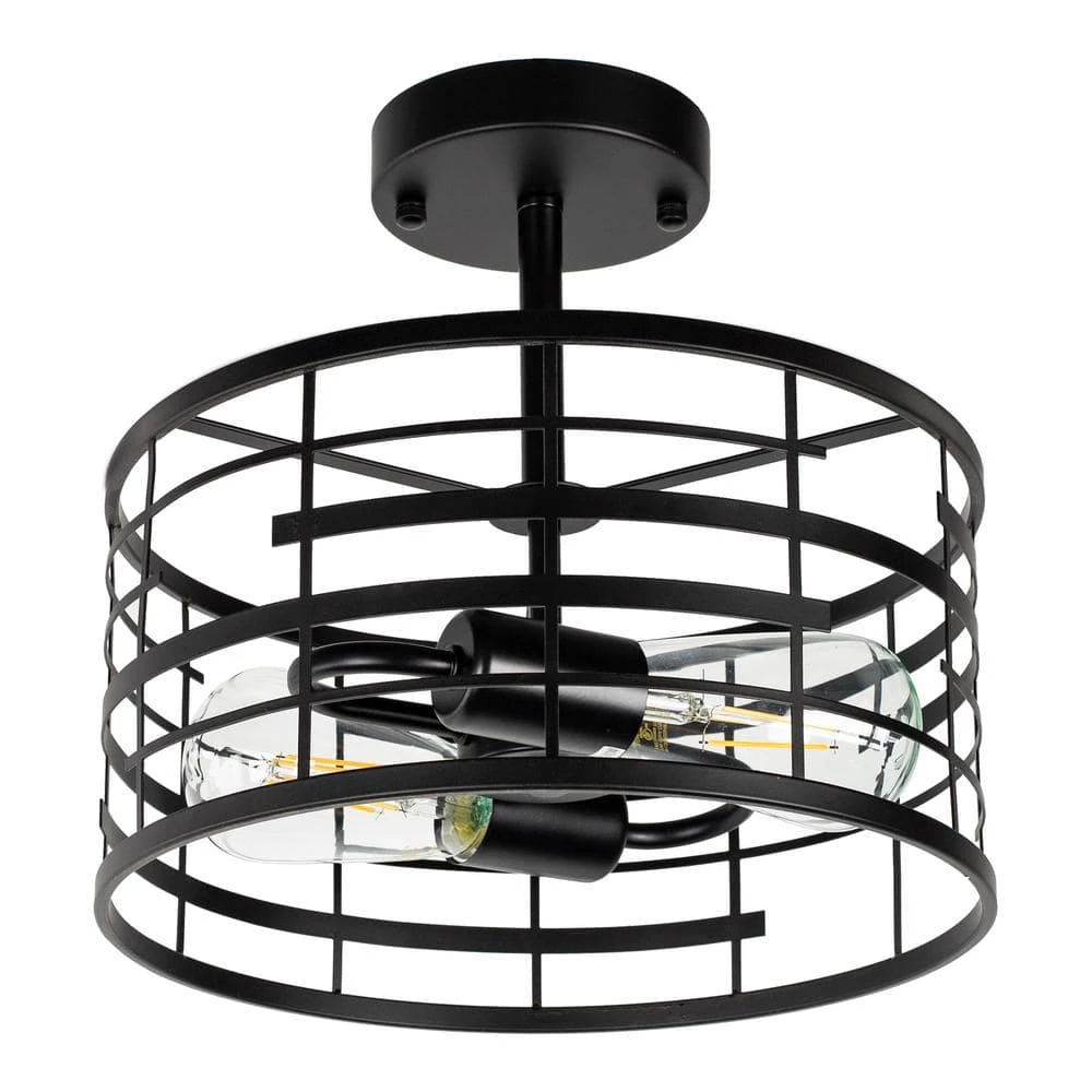 - Traditional design: 11 in. modern industrial ceiling light in a matt black finish enclosed iron cage frame
