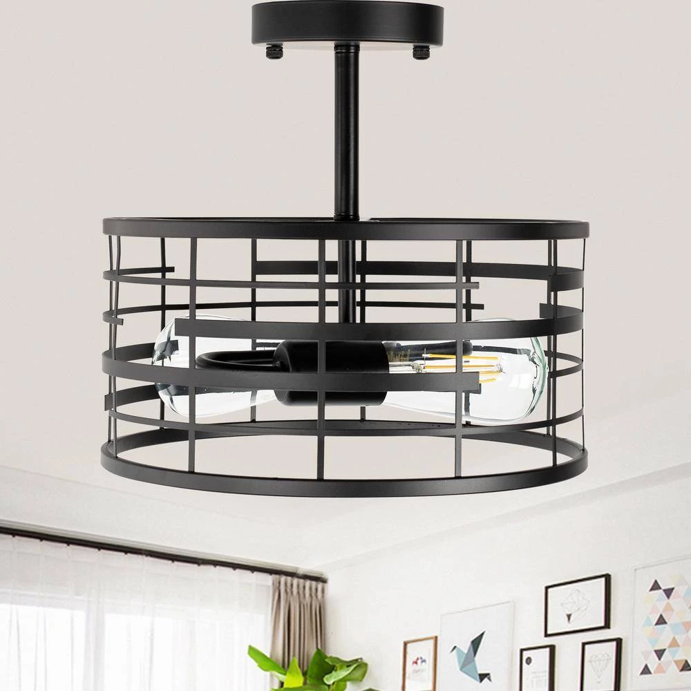 - Unique shade: industrial matte black cage style shade, this flush mount ceiling fixture will add antique and vintage appeal to your home