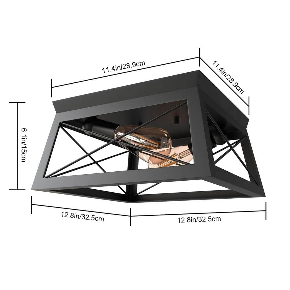 The black coating and geometric rectangle cage design add a vintage farmhouse feel to this flush mount industrial ceiling light. making it a subtle yet striking statement suitable for many spaces. including hallway, bedroom and living roomthebold and rigid lines, sleek flush mount canopy and smooth black finish are signature of elevated craftsmanship.