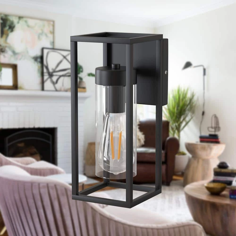This is an 1-Light Black Glass Wall Lamp. It belongs to the American country industrial retro wrought iron style. It can be installed in Nordic creative restaurants, bars or aisles.