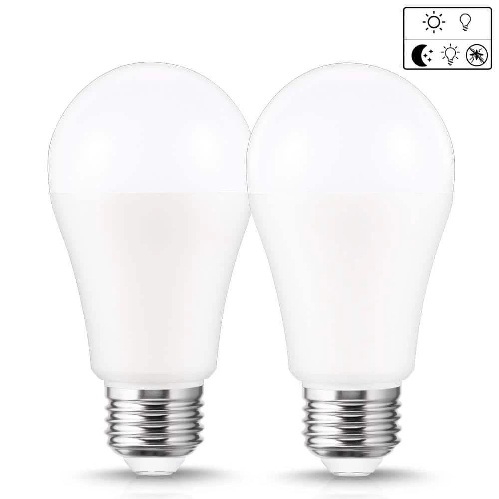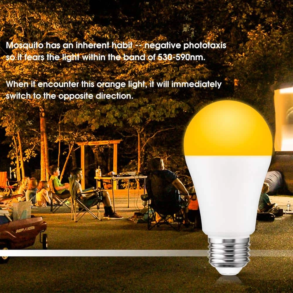 The A19 dusk to dawn LED bulb equal to 100-Watt incandescent light bulb. If you install the amber yellow light at home, it will keep you away all kinds bug. The light bulb gives off a yellow light and the bugs will far from you. The yellow bug light will be great companion for you.