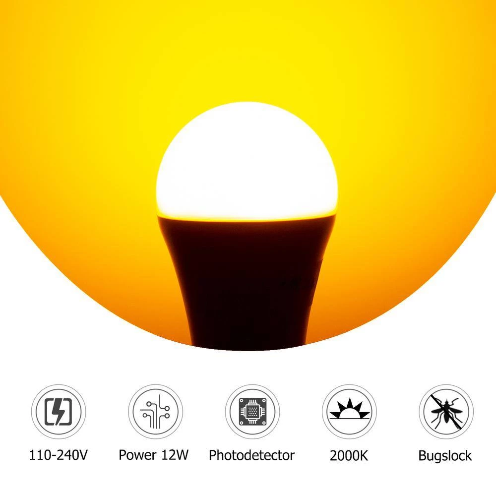 The A19 dusk to dawn LED bulb equal to 100-Watt incandescent light bulb. If you install the amber yellow light at home, it will keep you away all kinds bug. The light bulb gives off a yellow light and the bugs will far from you. The yellow bug light will be great companion for you.
