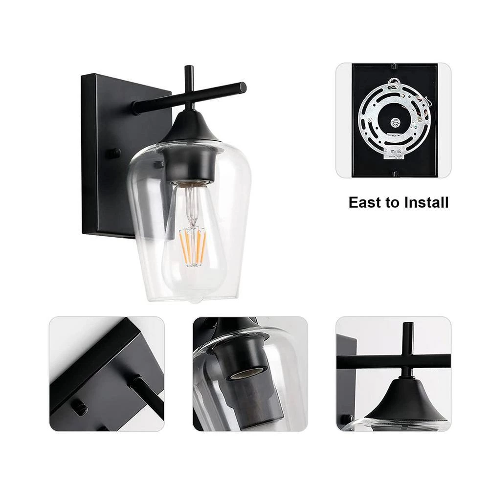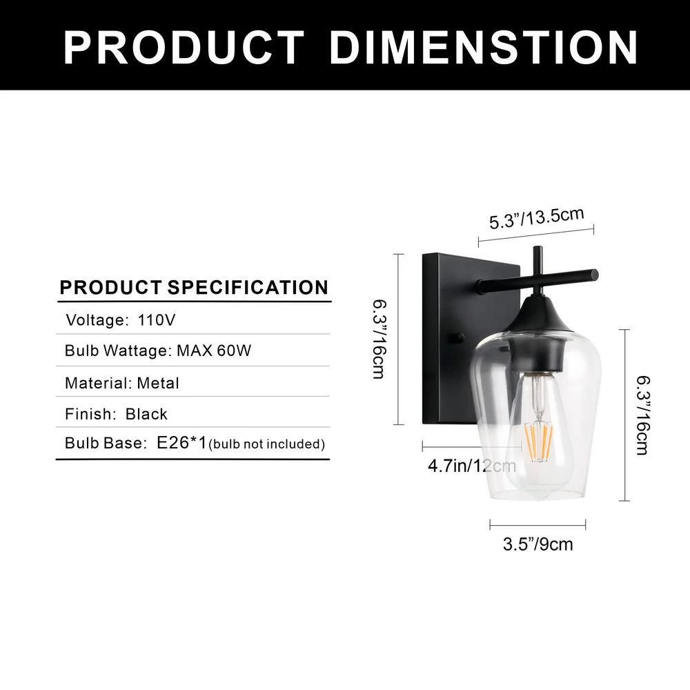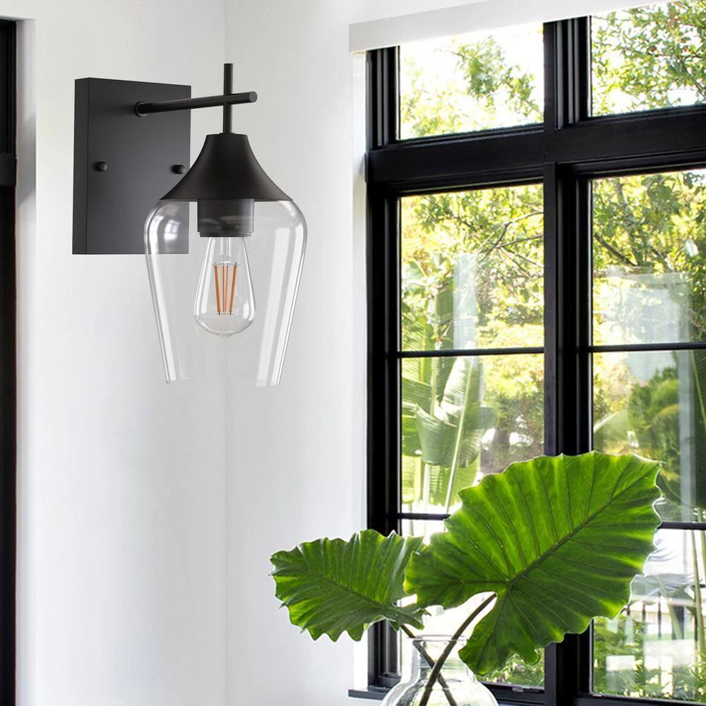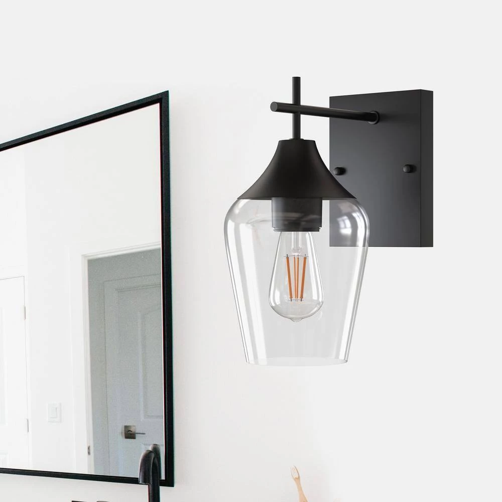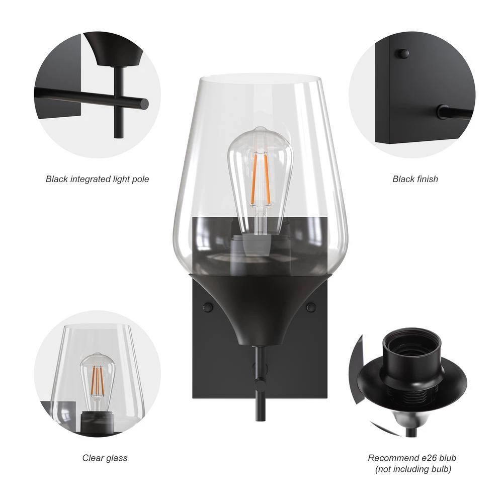 13 in. 1-Light Matte Black Wall Sconce with Wine Glass Shade by YANSUN