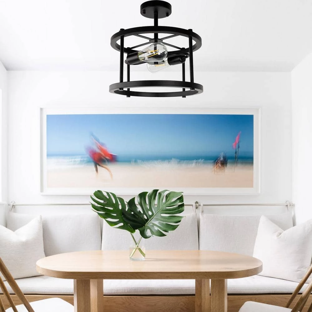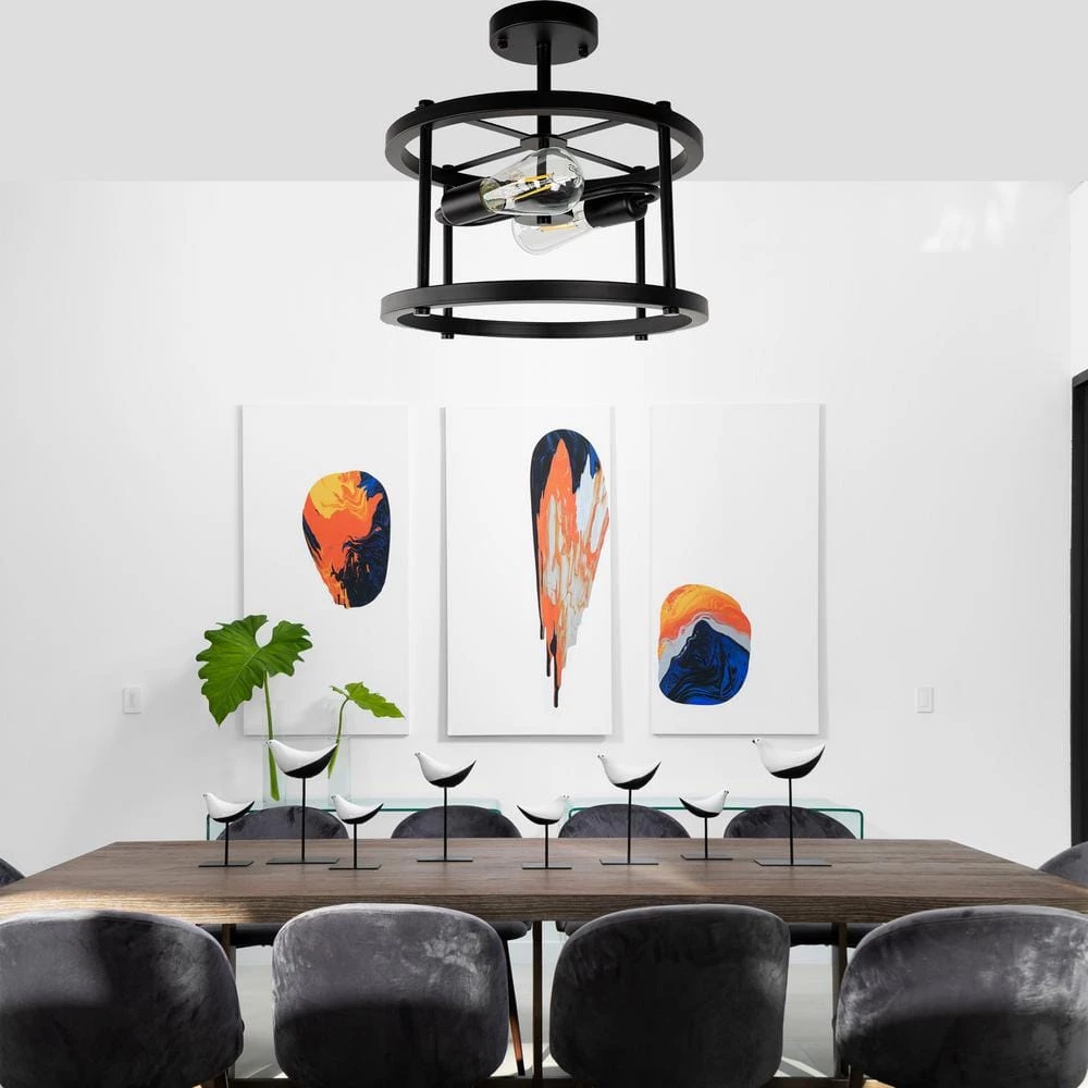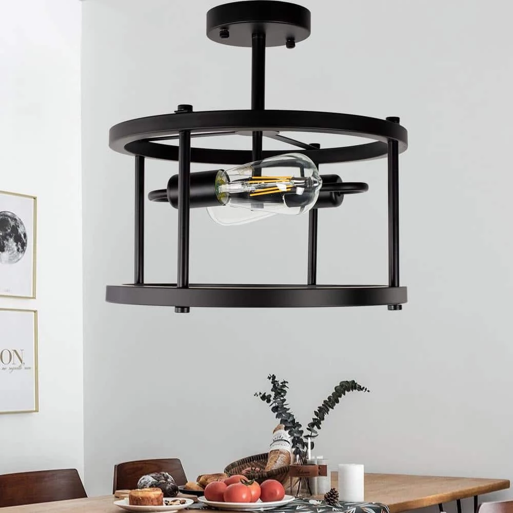13 in. 2-Light Black Mount Light Farmhouse Semi-Flush Mount, Modern Rustic Metal Drum Ceiling Lighting by YANSUN