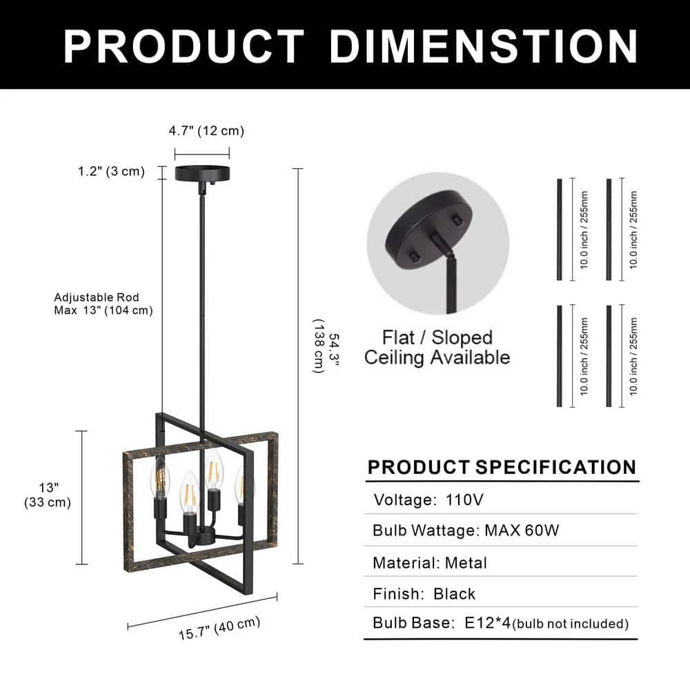 - Farmhouse style: the comfortable touch of the product creates a soft home atmosphere of modern farmhouse chandeliers, add a modern farmhouse rectangular chandelier style to the space, with 4 bulbs, so you have a bright room and a suitable living space