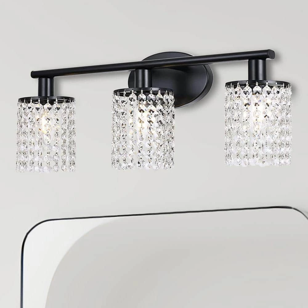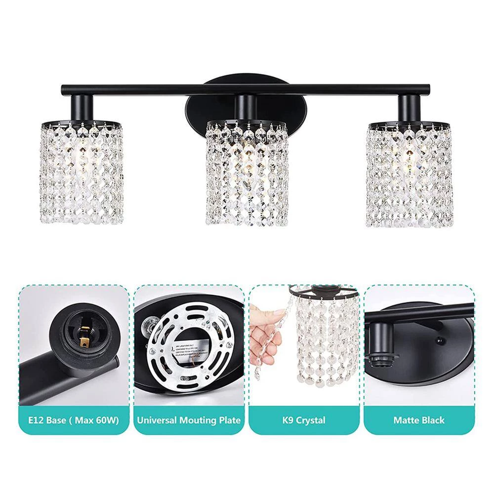 This light is 3-Light Matte Black Vanity Wall Lamp with Crystal Shade. It belongs to the Nordic light luxury style wall lamp. It not only provides you with the lighting function and the efficiency and safety of the product materials, but also allows you to enjoy the antique while still enjoying the modern convenience.