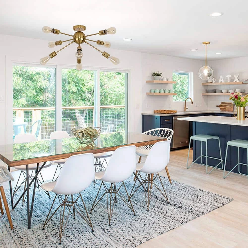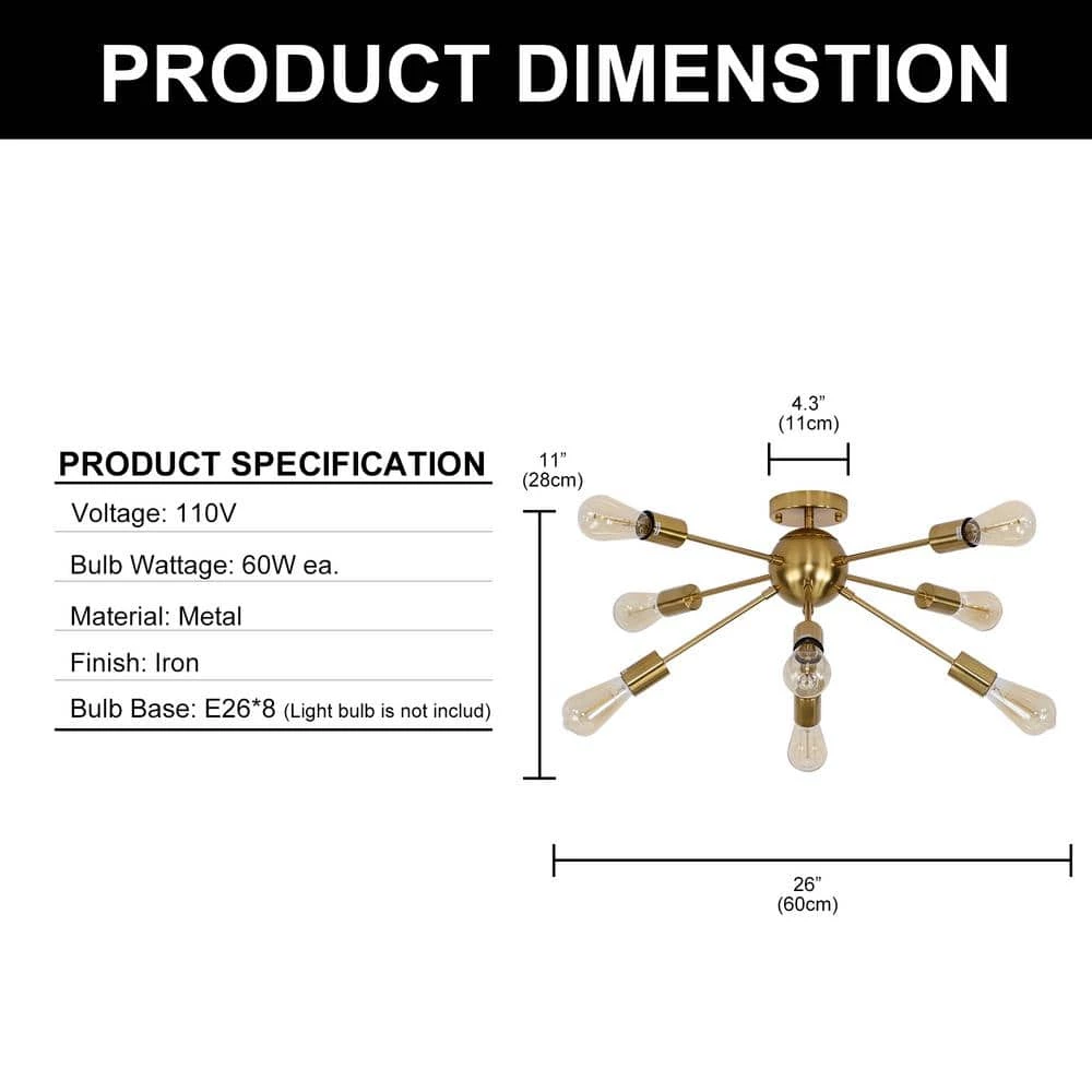 This gold flush mount ceiling light fixture with the unique sputnik design is the perfect decoration for the modern or farmhouse home.It adds industrial style elements to update for home decoration. It’s the perfect sputnik chandelier to install in the bedroom, living room, dining room, foyers, kitchen, and any room you like.
