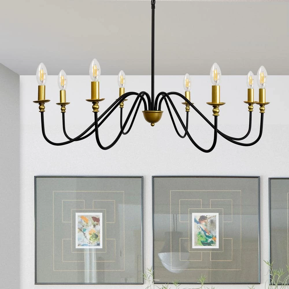 This Lighting has 8 Lights. It is a farmhouse black candel vintage chandelier lamp cup. The classic candle pendant lighting for kitchen island, living room, bedroom, dining room.
