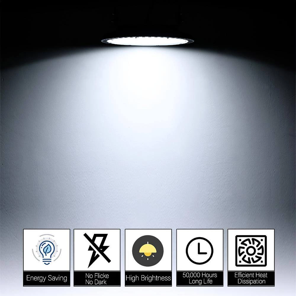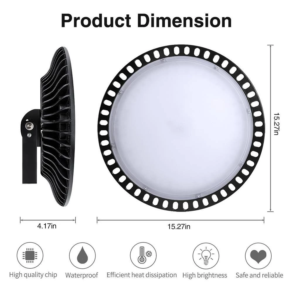 - Good heat dissipation: the UFO appearance is beautiful and the shell is made of high-pressure die-cast aluminum, there are many radiator fins on the lamp shell for good heat dissipation effect