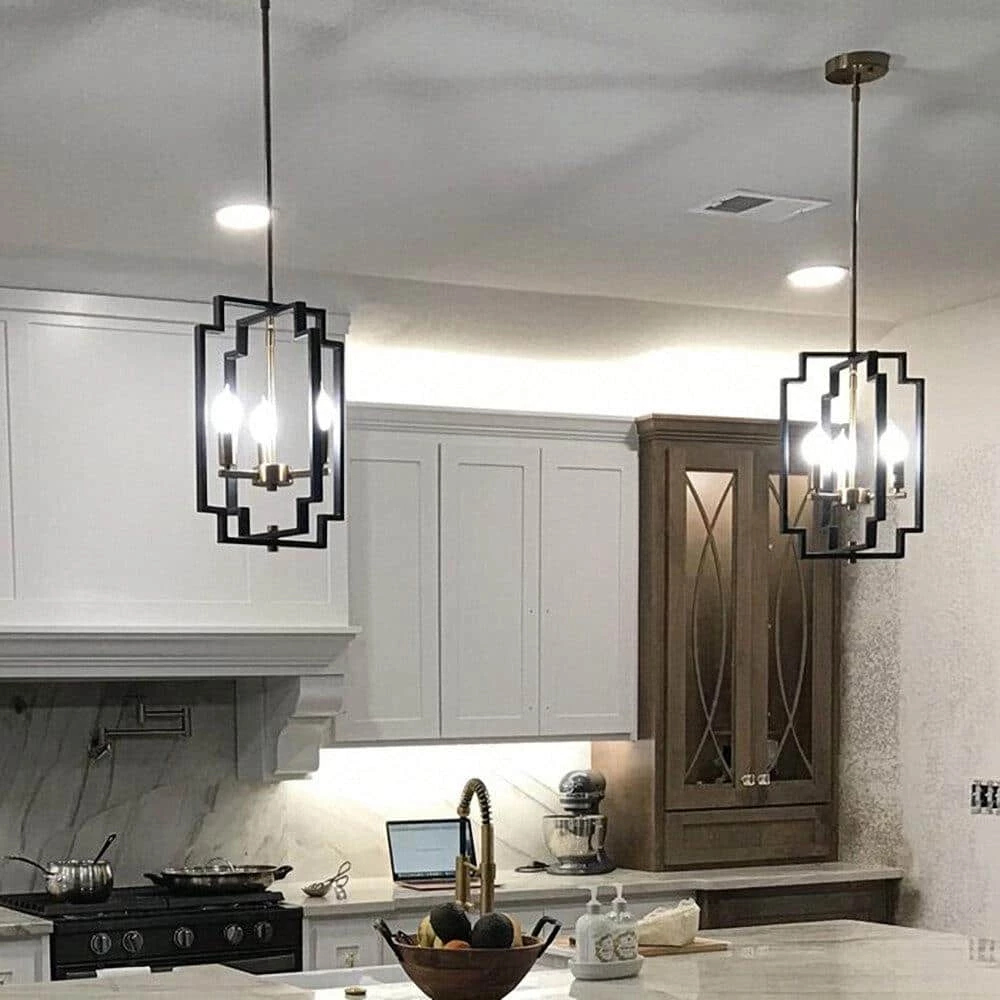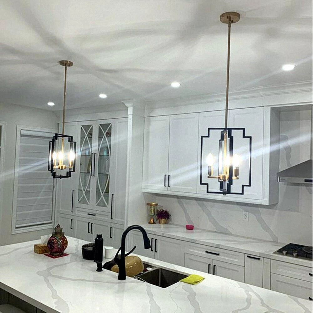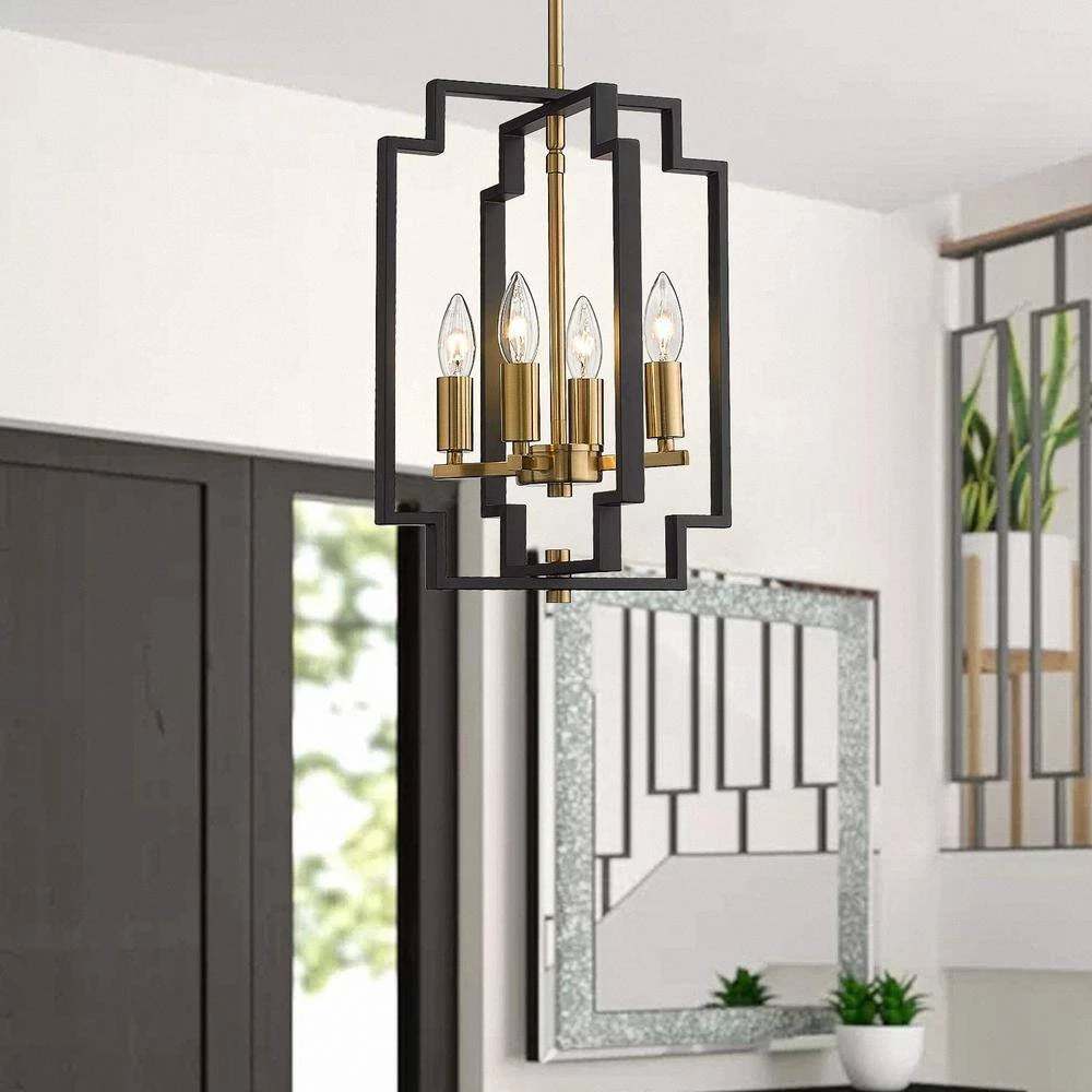 - Unique design its 4-candle-like fixtures are set within a contrasting frame made of open, intersecting rectangles with recessed corners