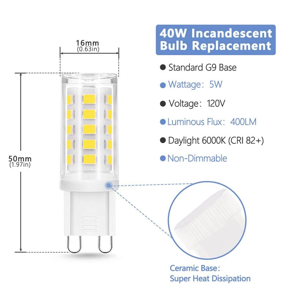 - Wide Application: Easy to install, standard G9 Base, ideal for chandelier, kitchen pendant fixtures, under cabinet lights, bathroom vanity light fixture.