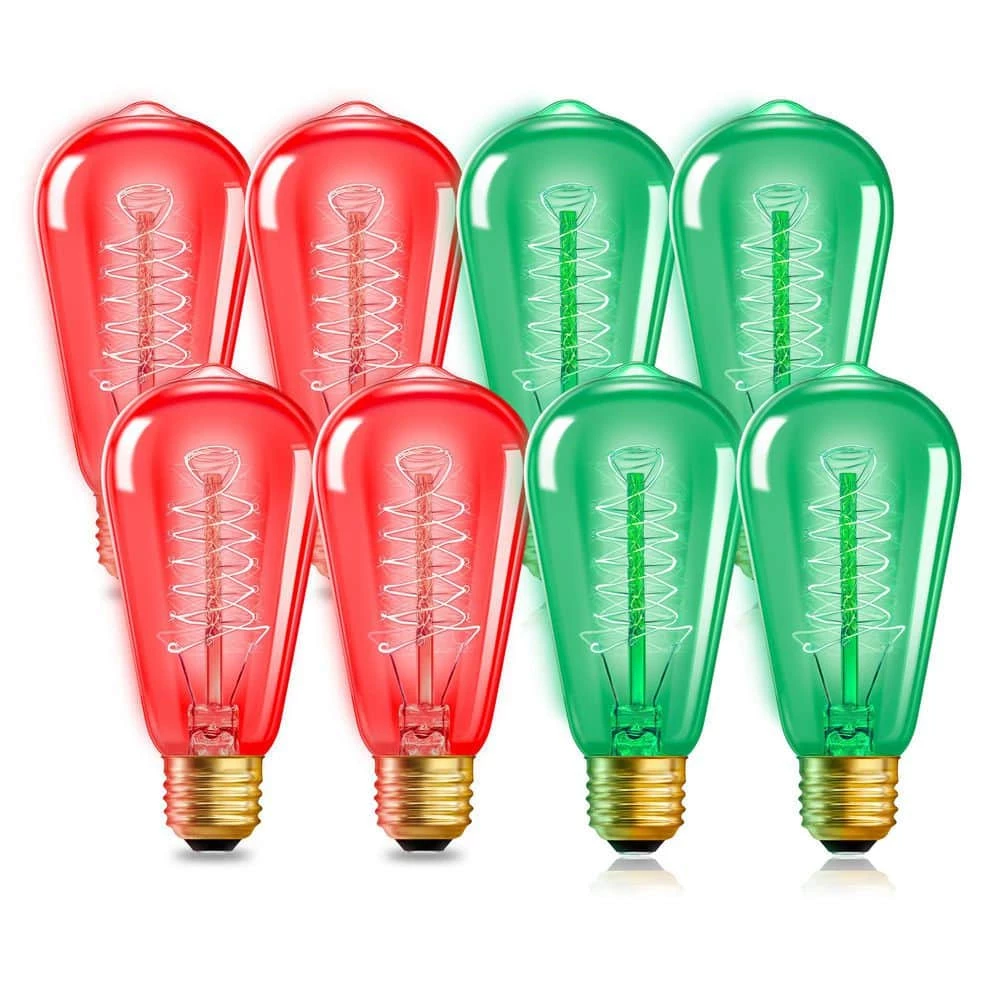 - Features: pack of 8 bulbs of incandescent ST58 colored light bulb that works with 120 voltage and fits to E26 base