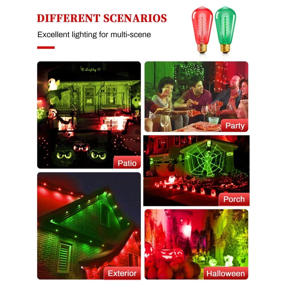 Colorful Light Bulbs have bright and vibrant coloring that will provide years of use for your holiday light display. These bulbs with E26 base will shine for 3,000-hours. These transparent ST58 replacement lamps can be used inside or outside to decorate roof lines, patios, Christmas tree and walkways.