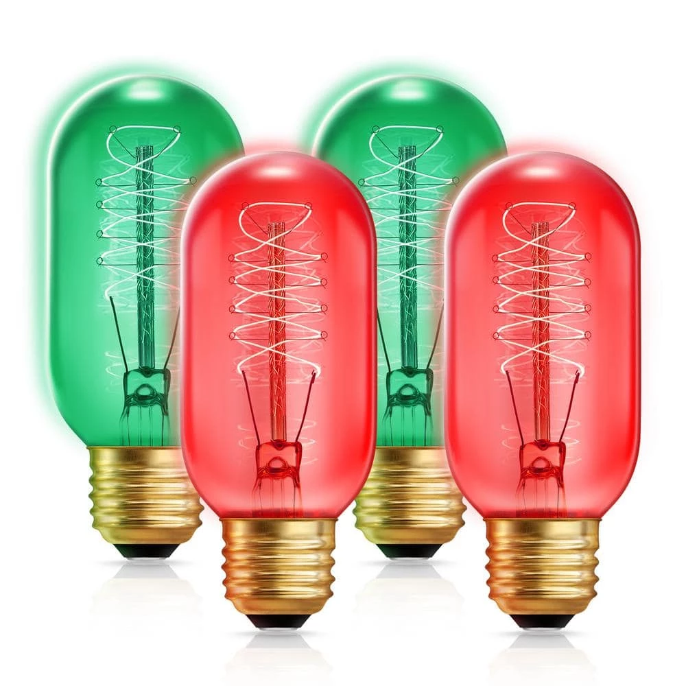 - Features: Pack of 4 bulbs of incandescent T45 colored light bulb that works with 120 voltage and fits to E26 medium base type.