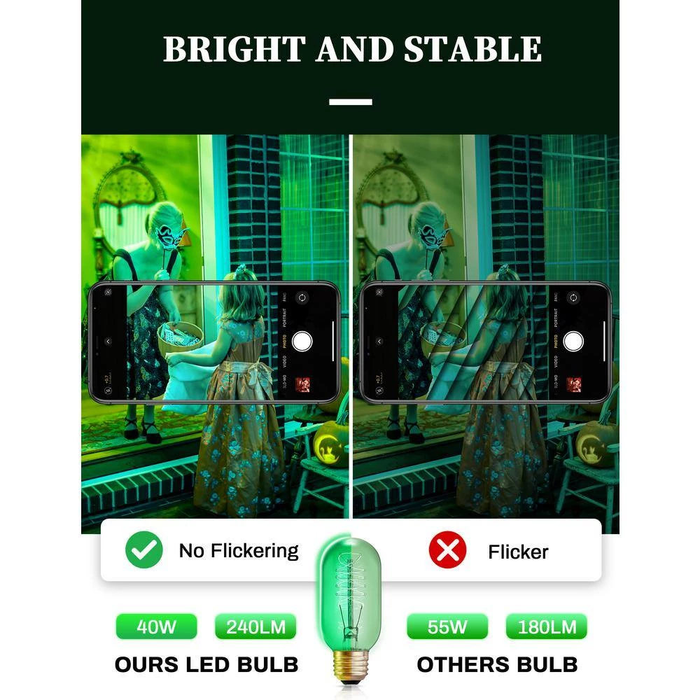 They fit T45 size and fit E26 base. Hang them on the roof outside or on the mantel inside. These bulbs will last over 3,000 hours. So you can decorate your home for Halloween/Christmas.