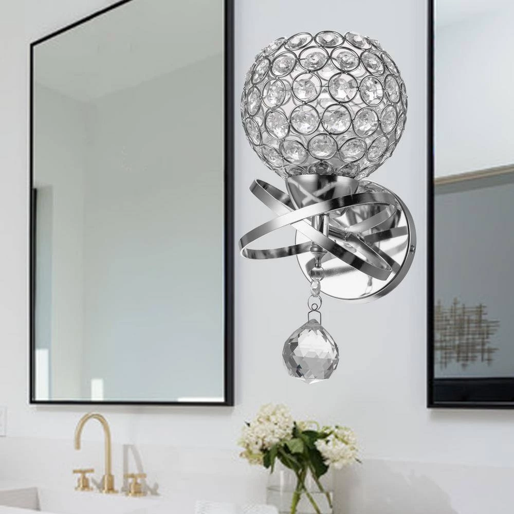 - Sparkle design: sconces wall lighting with crystal lampshade featuring a radiant chrome finish and finely cut premium grade octagonal crystal beads, ensuring its sparkle can be admired from any angle