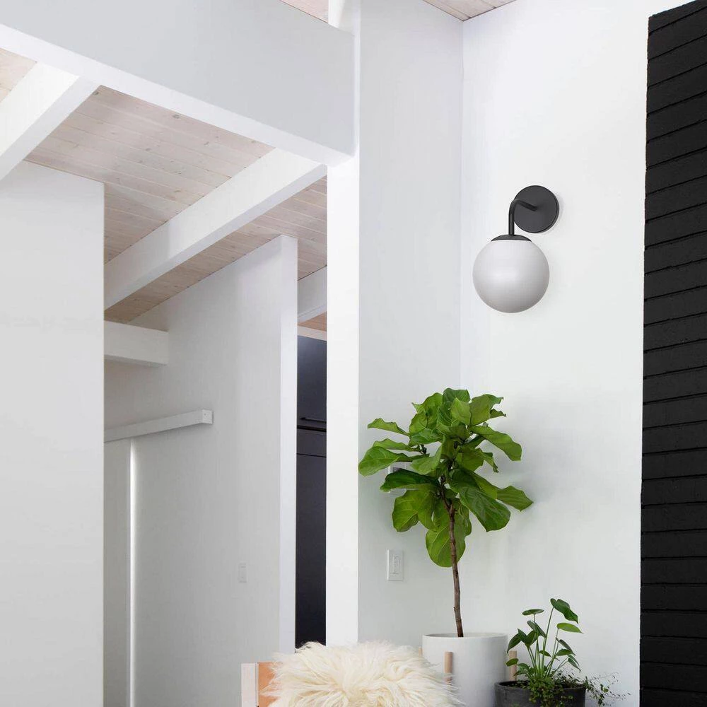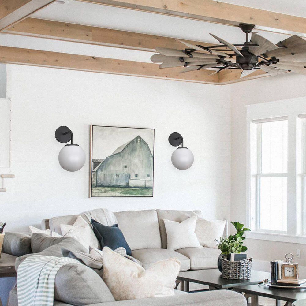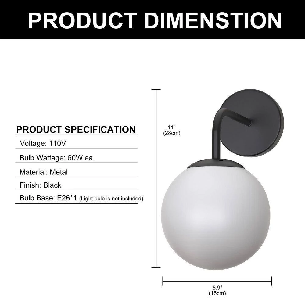 - Wall light is composed of a black ingenious iron bracket and hand-made frosted glass shade