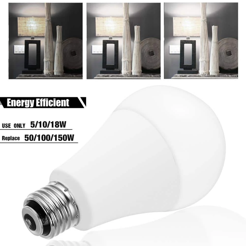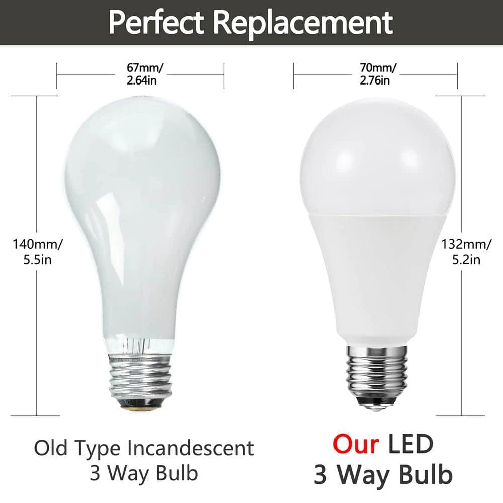 LED light bulbs offer 3 levels of illumination using a 3-way desk lamp, floor lamp or table lamp. With each click of the switch, the LED bulb will cycle between off 50-Watt, 100-Watt and 150-Watt equivalent brightness. Compared with incandescent bulbs, these bulbs require only a fraction power.