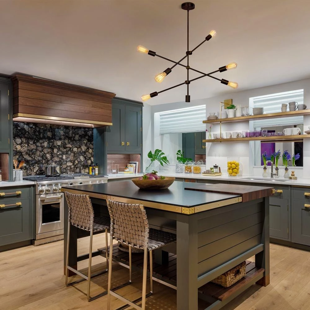 6-Light Black Unique Modern Linear Chandelier Pendant by YANSUN
