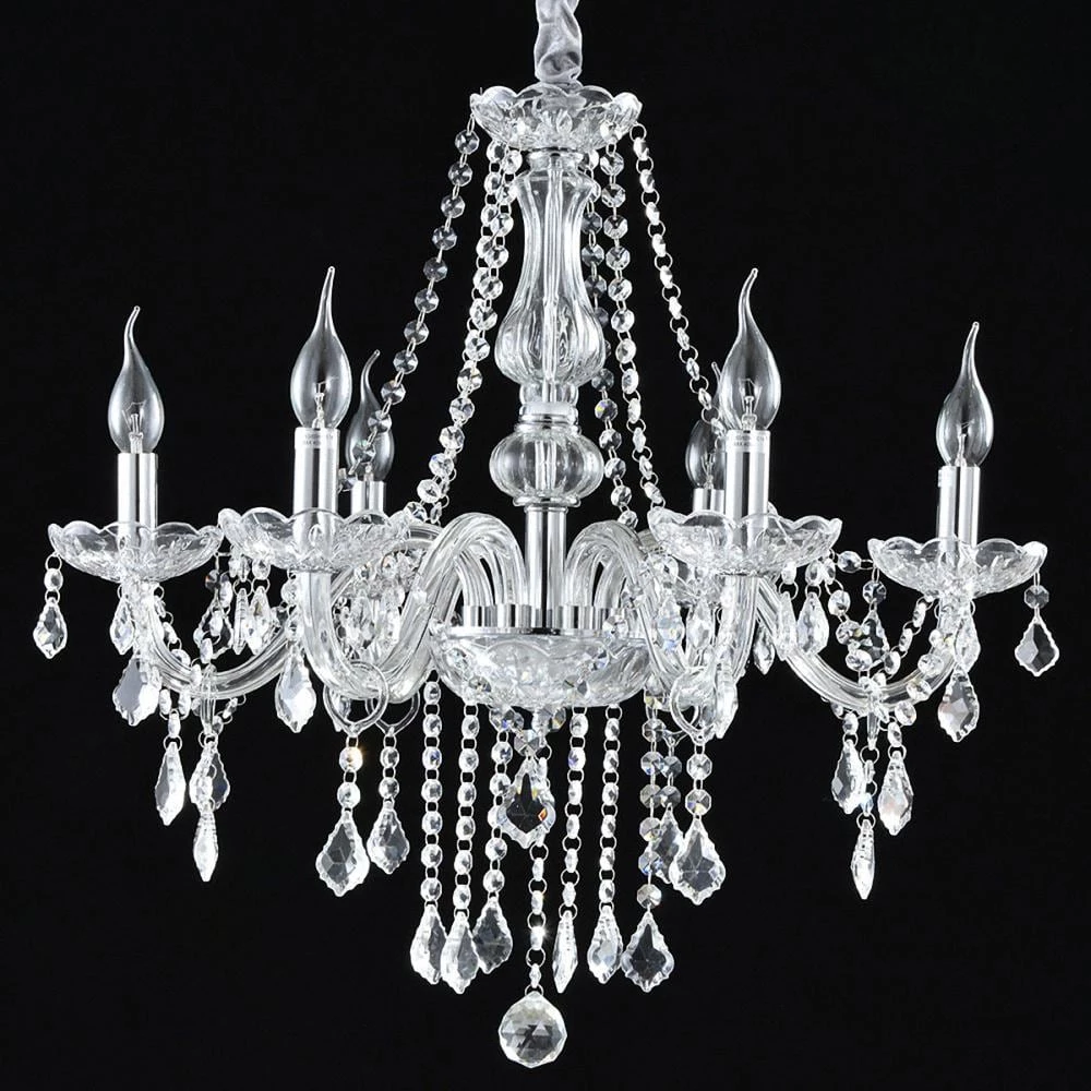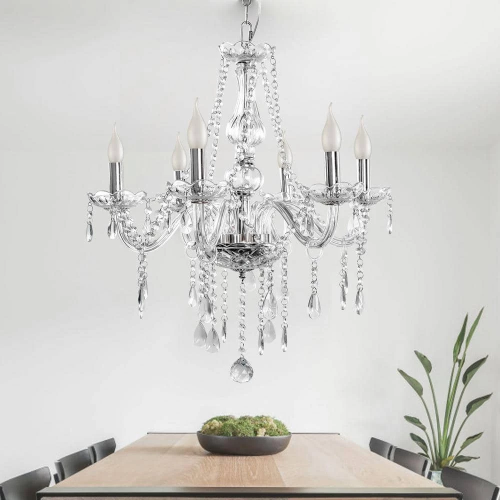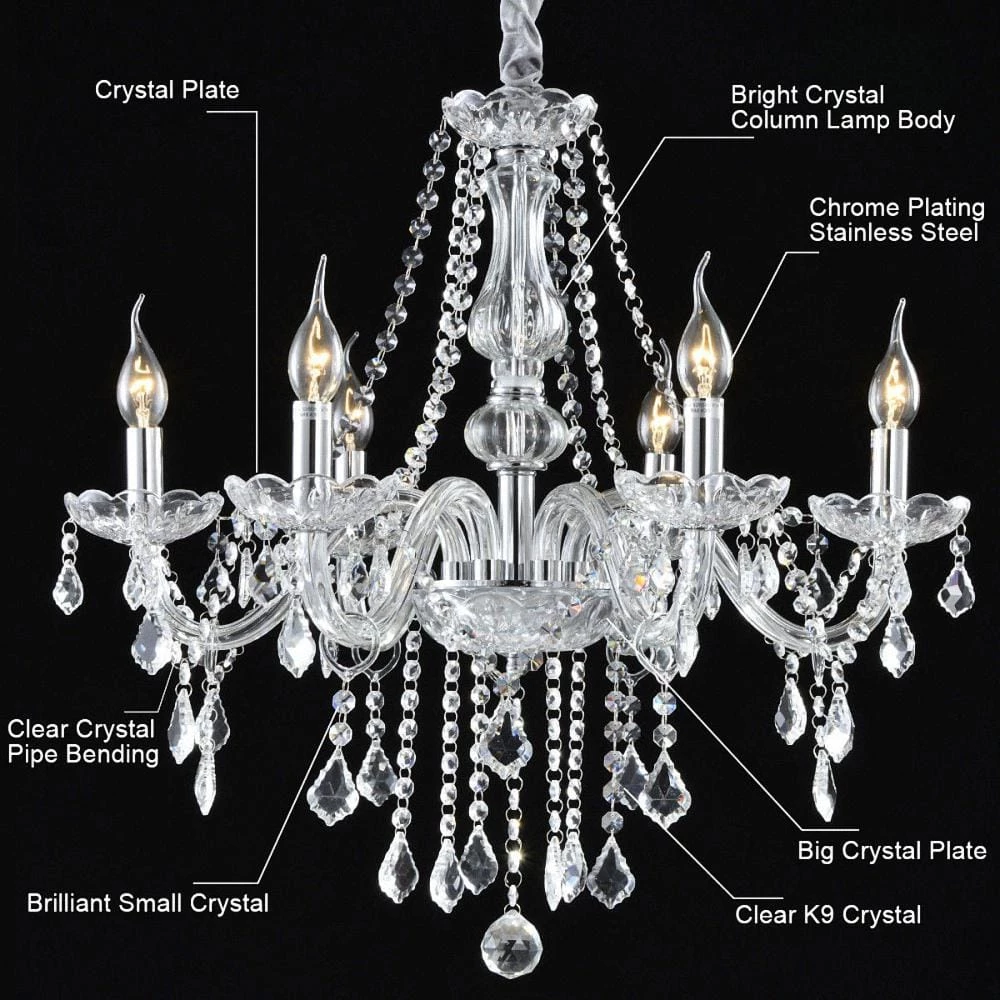 6-Light Chrome Candlestick Crystal Chandelier with K9 Crystal Shade by YANSUN