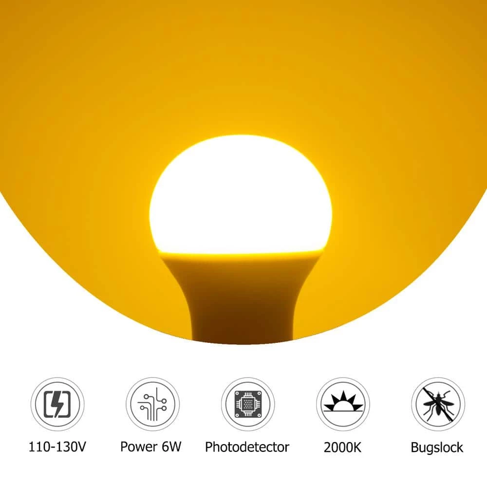 The A19 dusk to dawn LED bulb equal to 40-Watt incandescent light bulb. If you install the amber yellow light at home, it will keep you away all kinds bug. The light bulb gives off a yellow light and the bugs will far from you. The yellow bug light will be great companion for you.