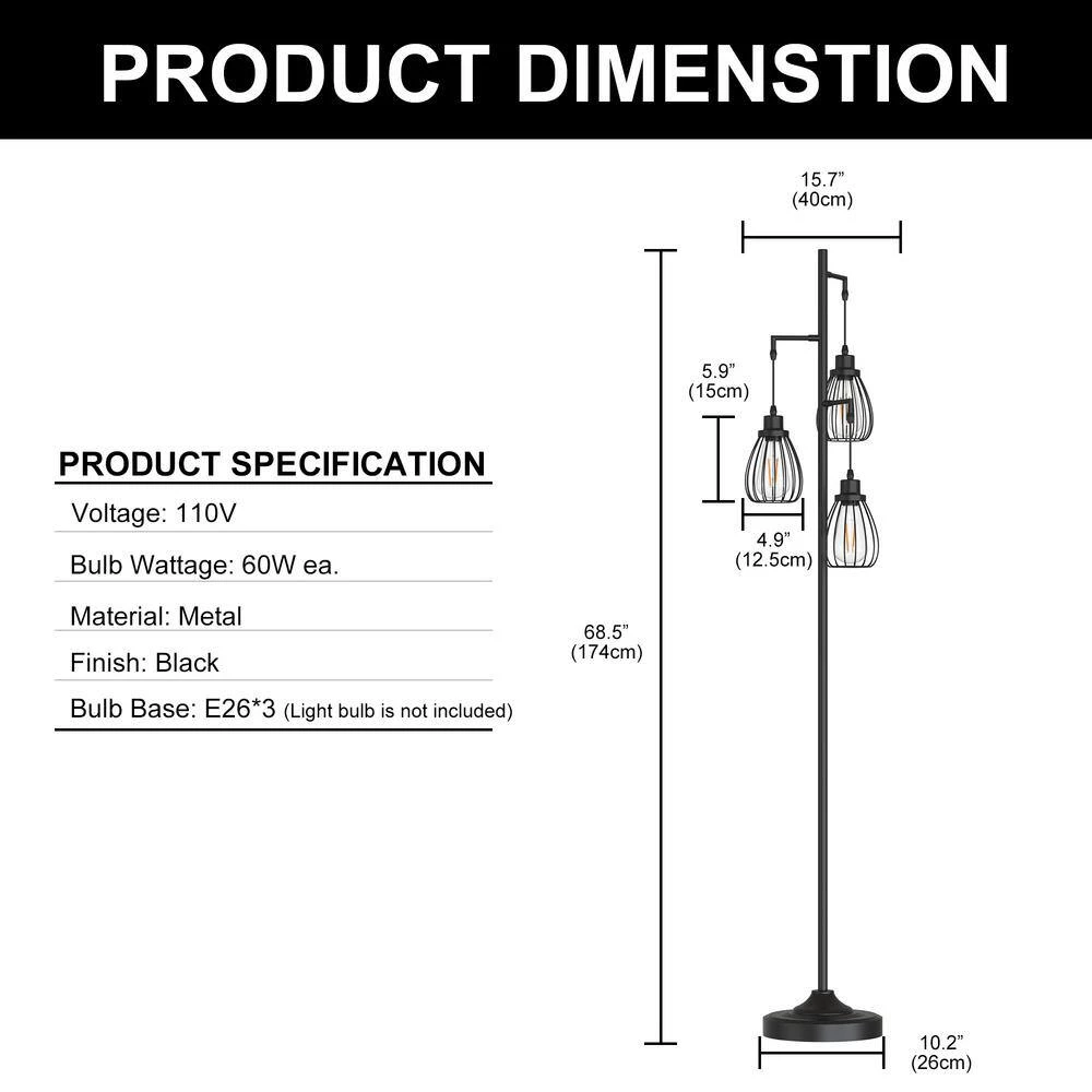 - Well-made and sturdy base: the floor lamp is made of superior metal from top to the base, black matting surface, 3-light cages are firm and heavy-duty, never bent, the pole is straight and tightly connected with the base, no swing