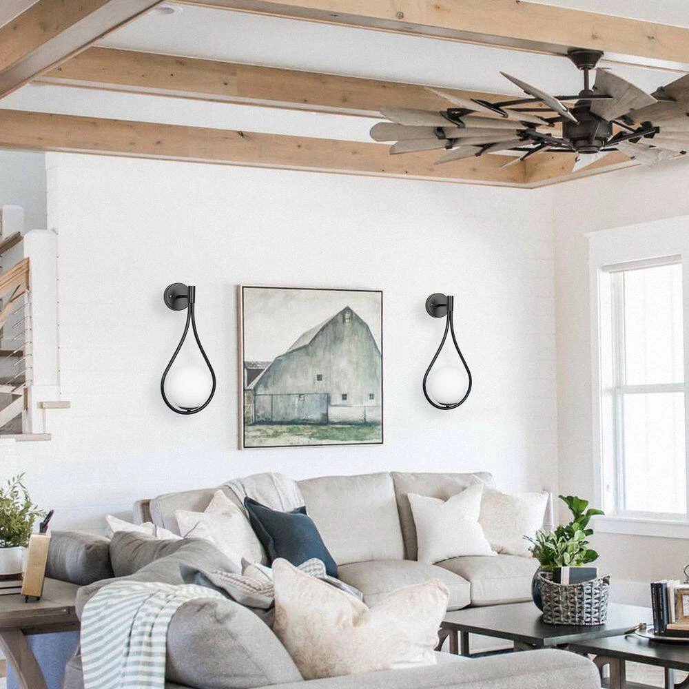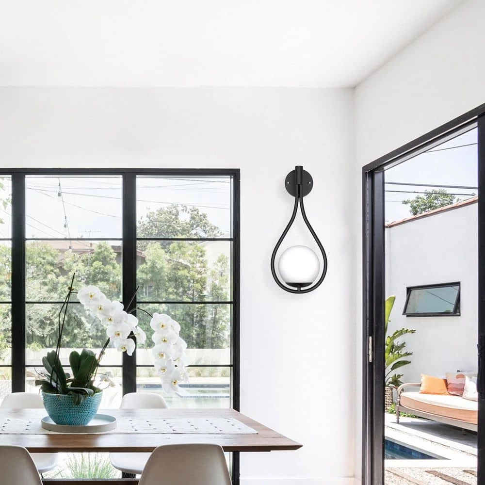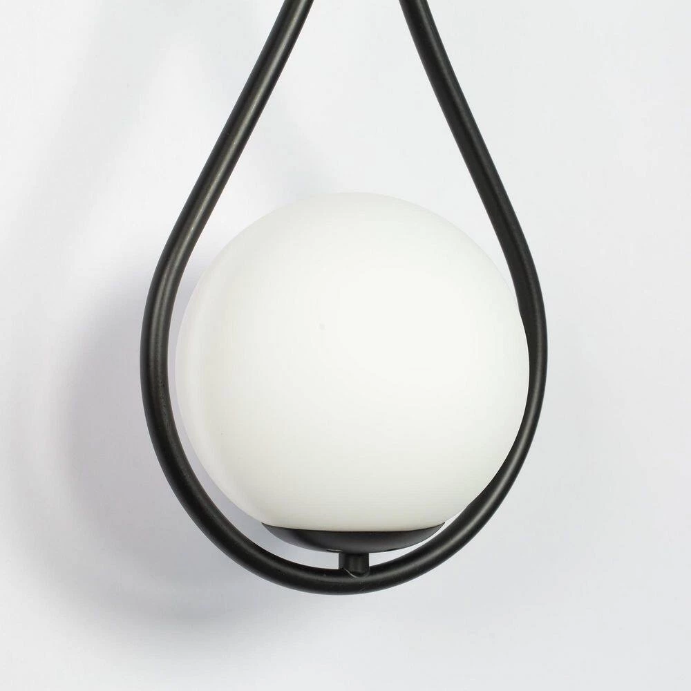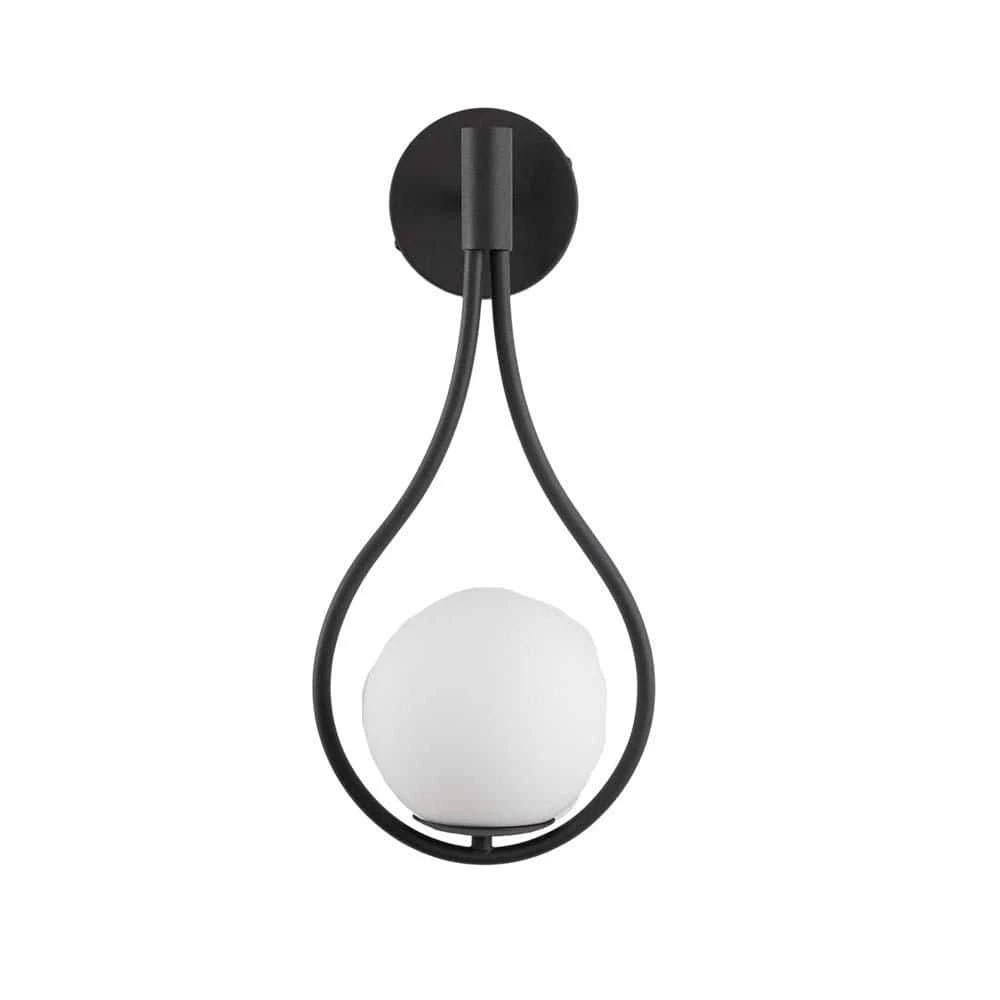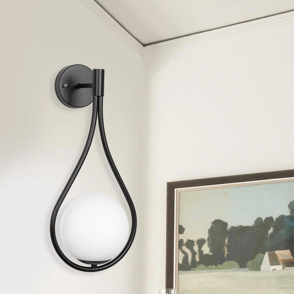- Wall light is composed of a black water drop shaped bracket and a round lampshade