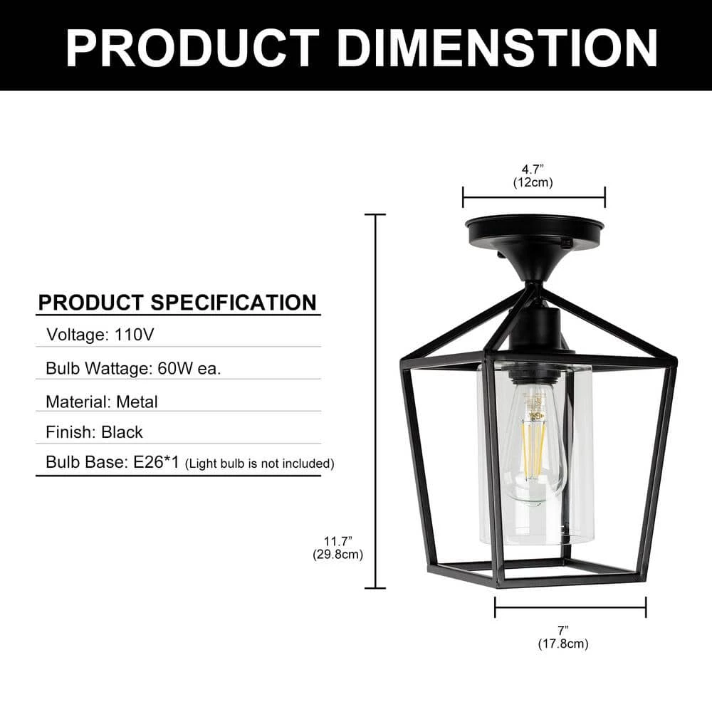 - Farmhouse style: the 1-light celling light with black finish complements most home decoration styles