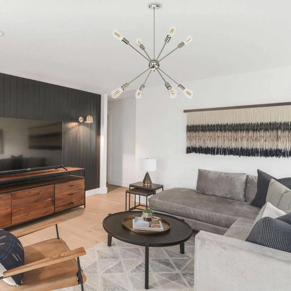 Defined by its iconic sputnik silhouette, this stunning 8-light chandelier lighting brims with modern industrial sputnik style that elevates the look of any place. 8 linear arms that just out from the center with a socket on the end to accommodate any LED, CFL, incandescent bulbs (Not Included). Blending the contemporary with the vintage when matching with any vintage Edison bulbs, this luminary with flexible extension rods (9.84 in. to 39.36 in.) contributes a designer look to your living space like foyer, kitchen, dining room, bedroom, hallway and complements all your home settings.