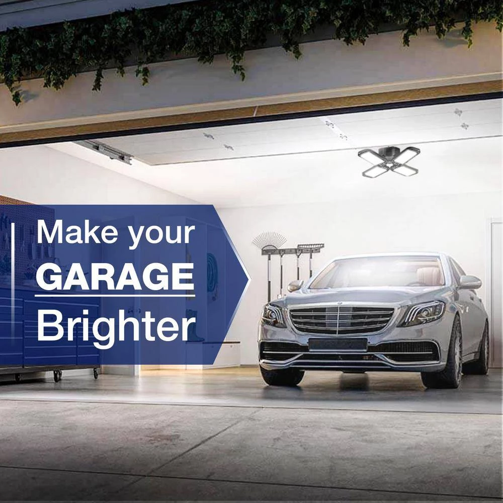 80-Watt Black Deformable LED Adjustable Garage Light Semi-Flush Mount Lighting, 4-Leaf 6000K Daylight White (8-Pack) by YANSUN