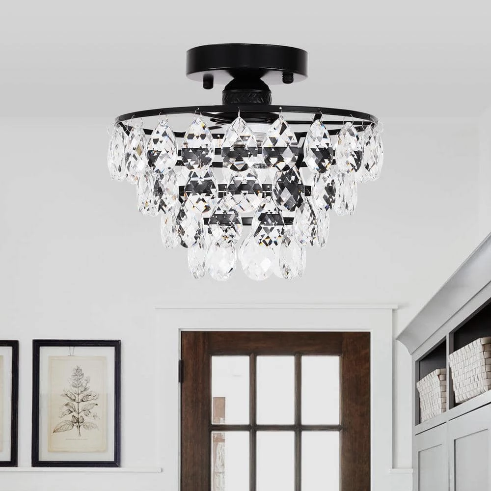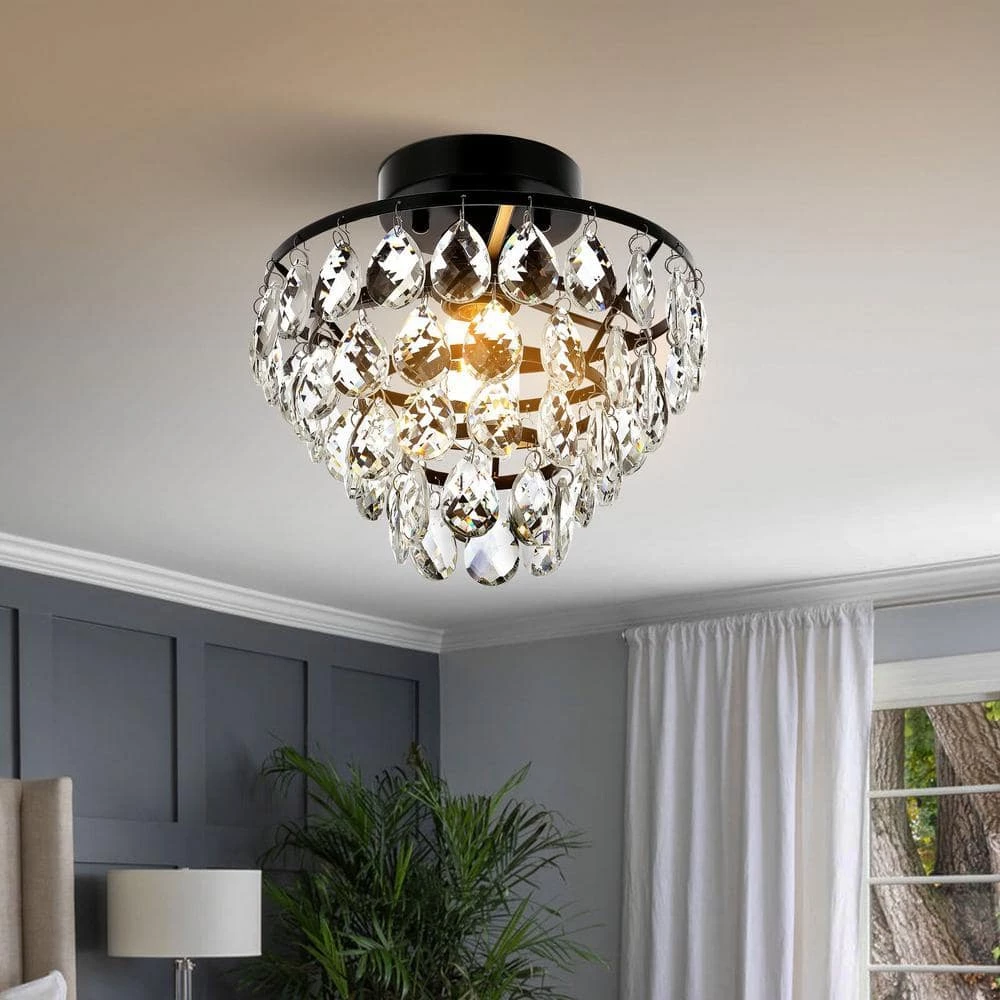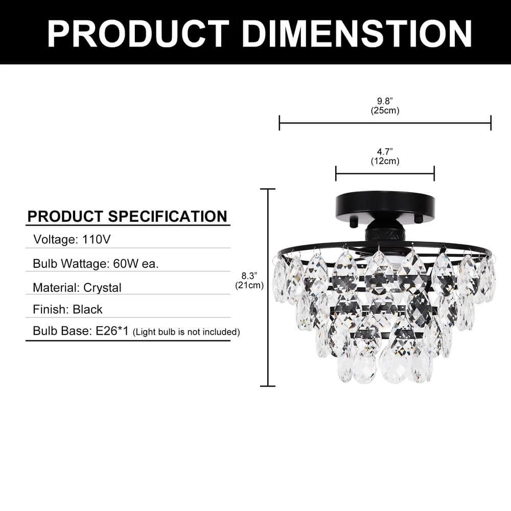 - Beautiful effect: black finish metal shade with sparkling crystal design stunning light.It is perfect fit if you are going for a very modern, antique look