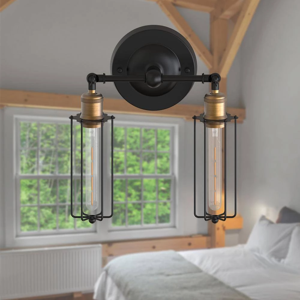 This light is 2-Light U-Shaped Dimmable Black Armed Wall Lamp. This is an American country style wall lamp. It is suitable for installation in retro restaurants, cafes, corridor or stairs.