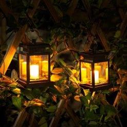 Solar Powered Hanging Lantern Outdoor Candle Effect Pendant Light in Warm White by YANSUN