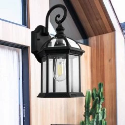 7 in. 1-Light 60-Watt Black Waterproof Outdoor Wall Pack Light Lantern with Glass Shade by YANSUN
