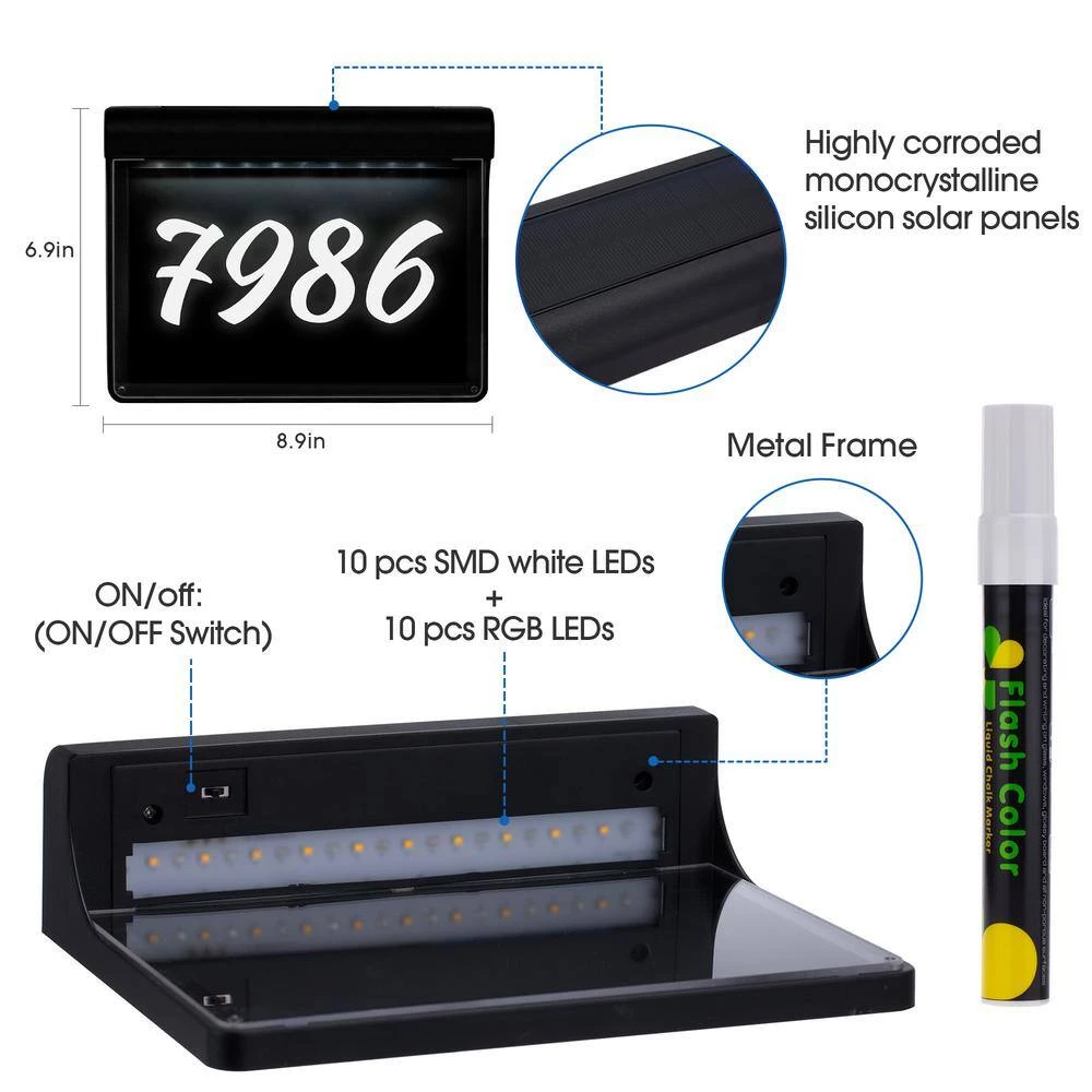 Designed to mount onto the outside of your house, YANSUN Solar Address Doorplate Light illuminates any DIY content including house number, address, symbols, festival wishes or other markings with 6000K-daylight and RGB color changing mode. It not only provides fast and accurate address identification for your visitors, couriers, emergency vehicles. But also create an atmosphere or eyeballs attraction for holidays, parties, commercial activities, etc.